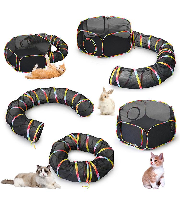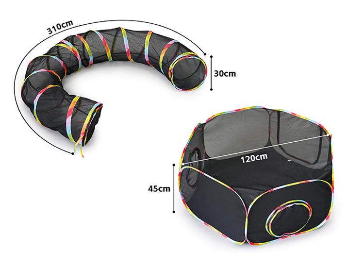 Nuevo túnel para gatos transfronterizo, nido plegable de malla de dos piezas, jaula antivuelco para gatos, suministros para mascotas