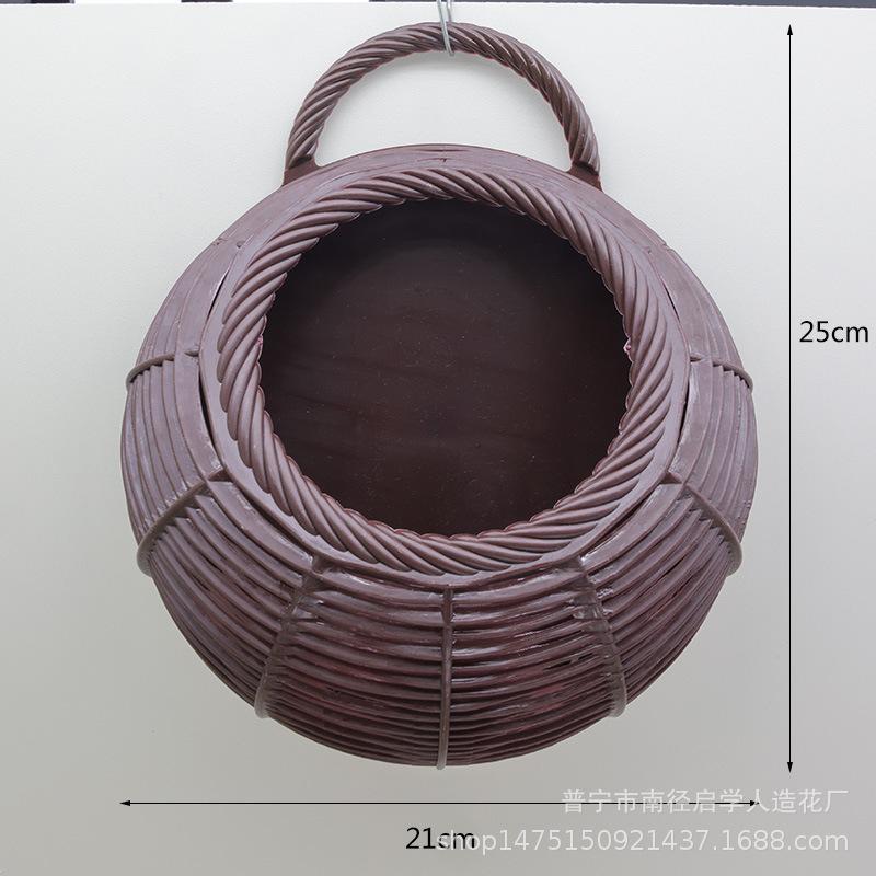 Cesta de flores para colgar en la pared, cesta tejida decorativa de imitación de hierba, maceta decorativa para el hogar, maceta de plástico con forma de medio abanico para flores.