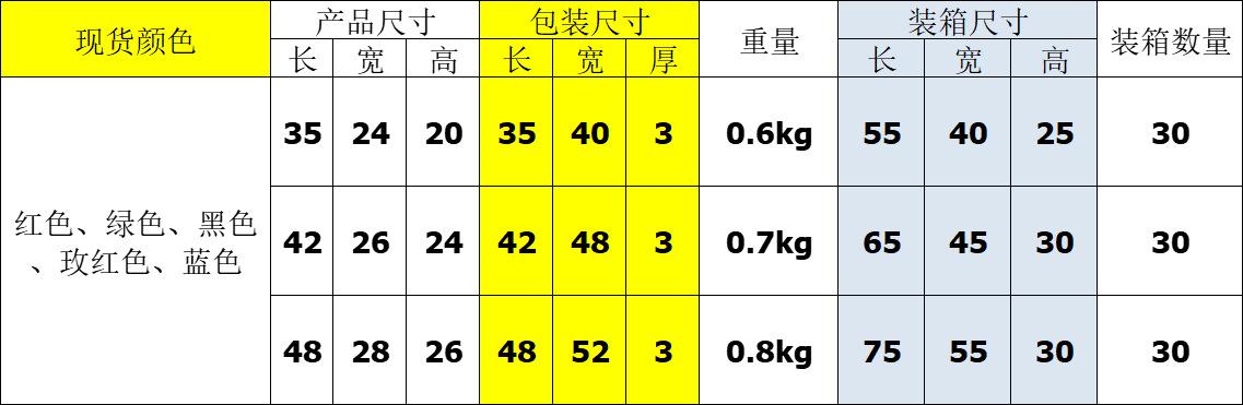 Small size s: 34*24*24cm, Medium m: 41*27*25cm, Large l: 48*27*27cm