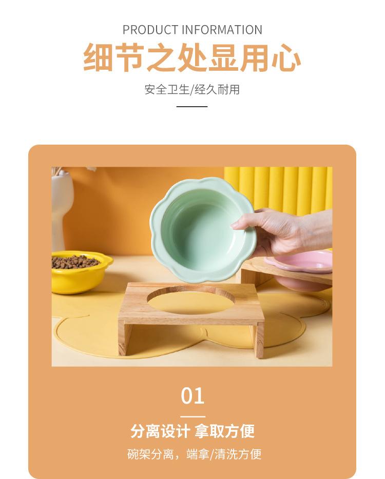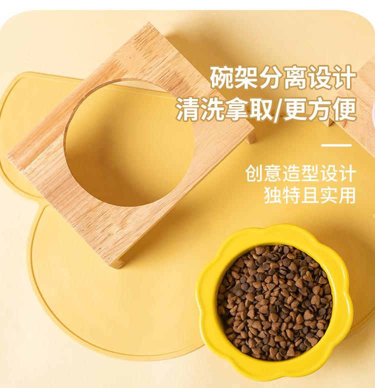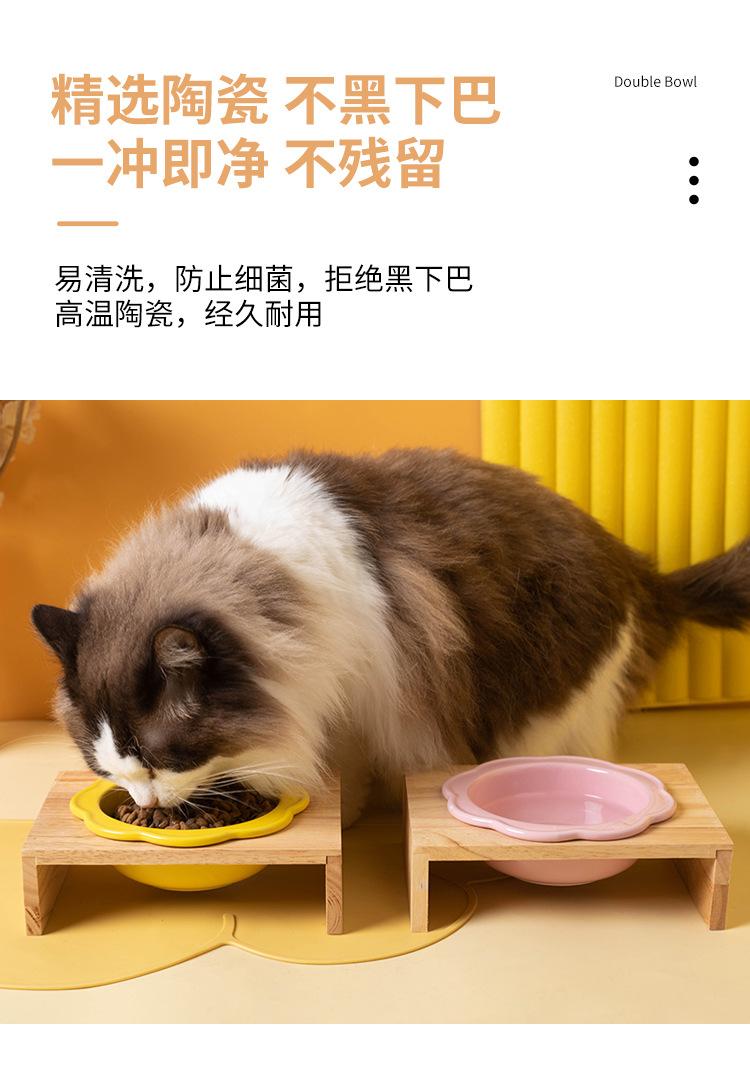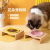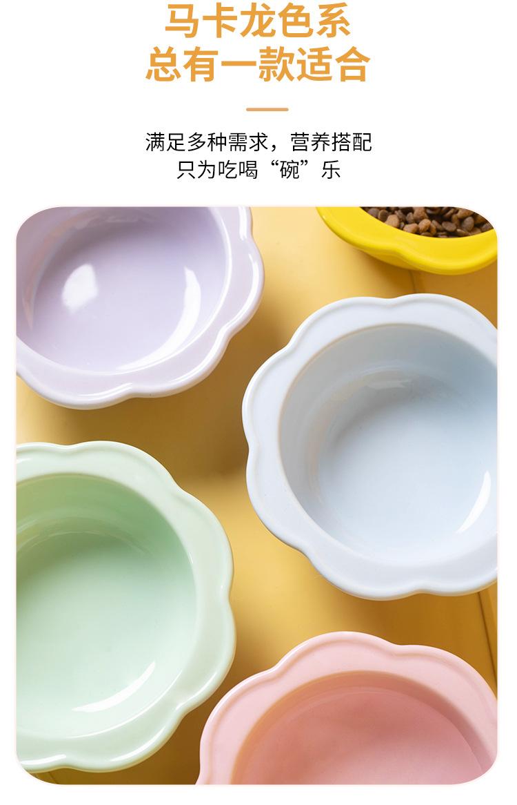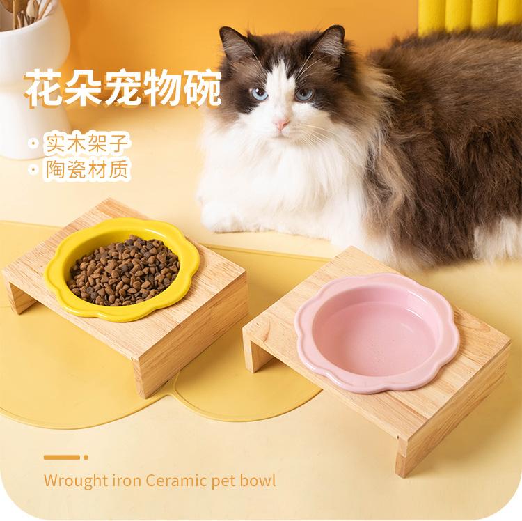 Cuenco de cerámica con forma de flor para gatos, cuenco antigolpes para la barbilla y el cuello, con patas altas y protección para el cuello.