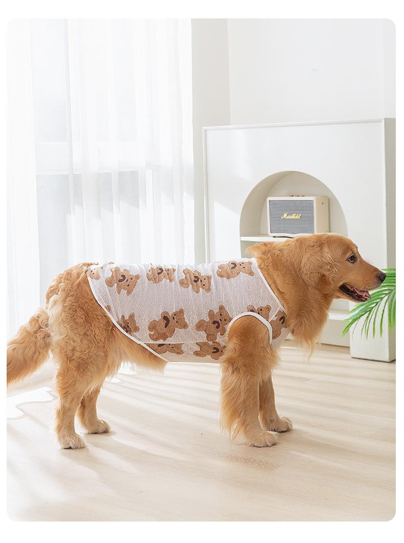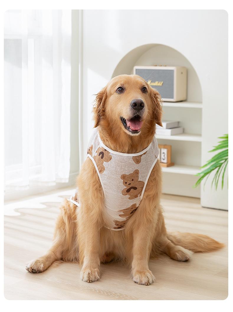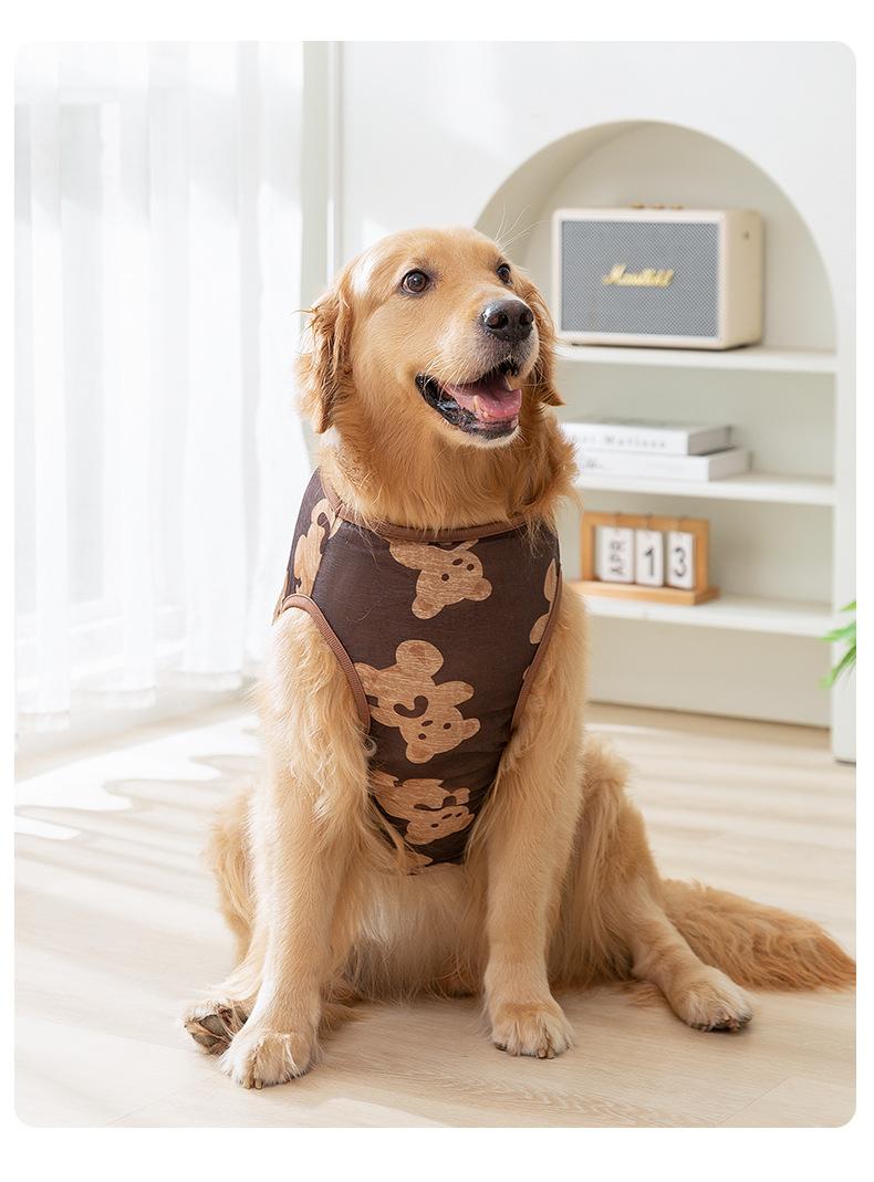 Ropa para Perro Grande Primavera y Verano Malla sin Mangas Chaleco de Oso de Dibujos Animados Verano Antimosquitos Delgada Transpirable Cabestrillo Ropa para Mascotas