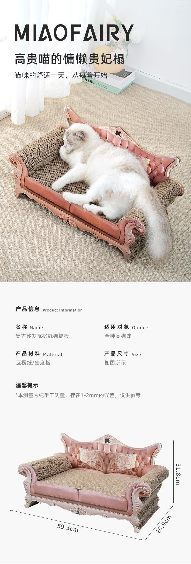 Sofá Retro Cartón Corrugado Rascador para Gatos Cama para Gatos Integrada Reemplazable Desmontable Afilador de Uñas Juguete para Gatos Resistente al Desgaste para Gatos