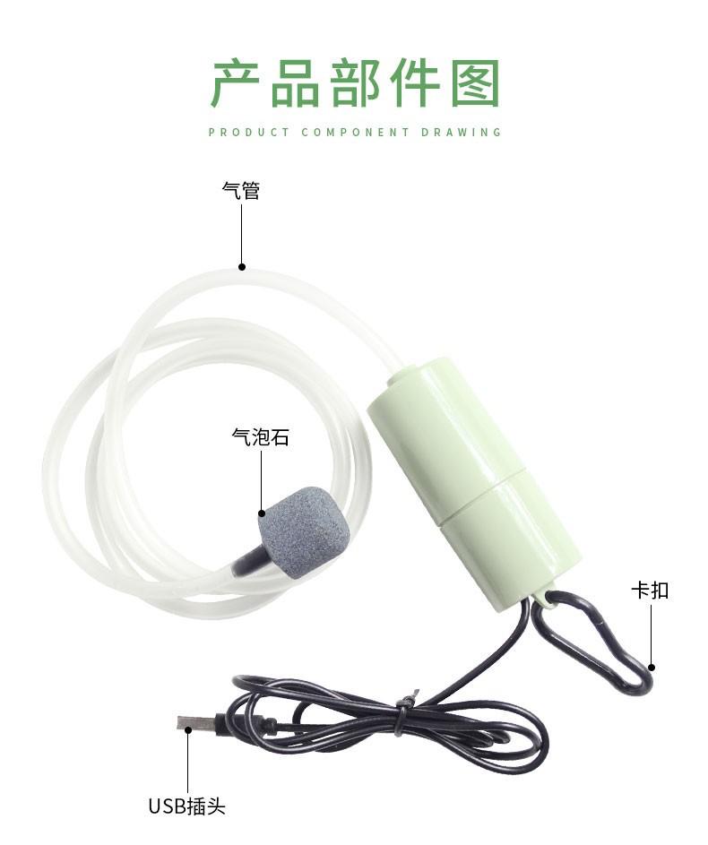 Nombre: Bomba de aire ultra silenciosa de oxígeno para acuario, reemplazo USB, ahorro de energía portátil