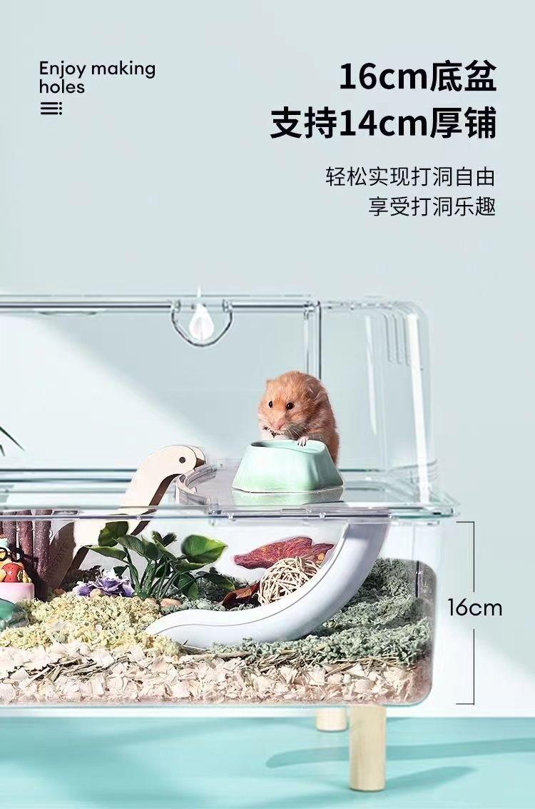 Los fabricantes venden suministros para jaulas de hámster, conjunto completo de jaulas de doble capa, villas grandes, castillos pequeños, jardines pequeños.
