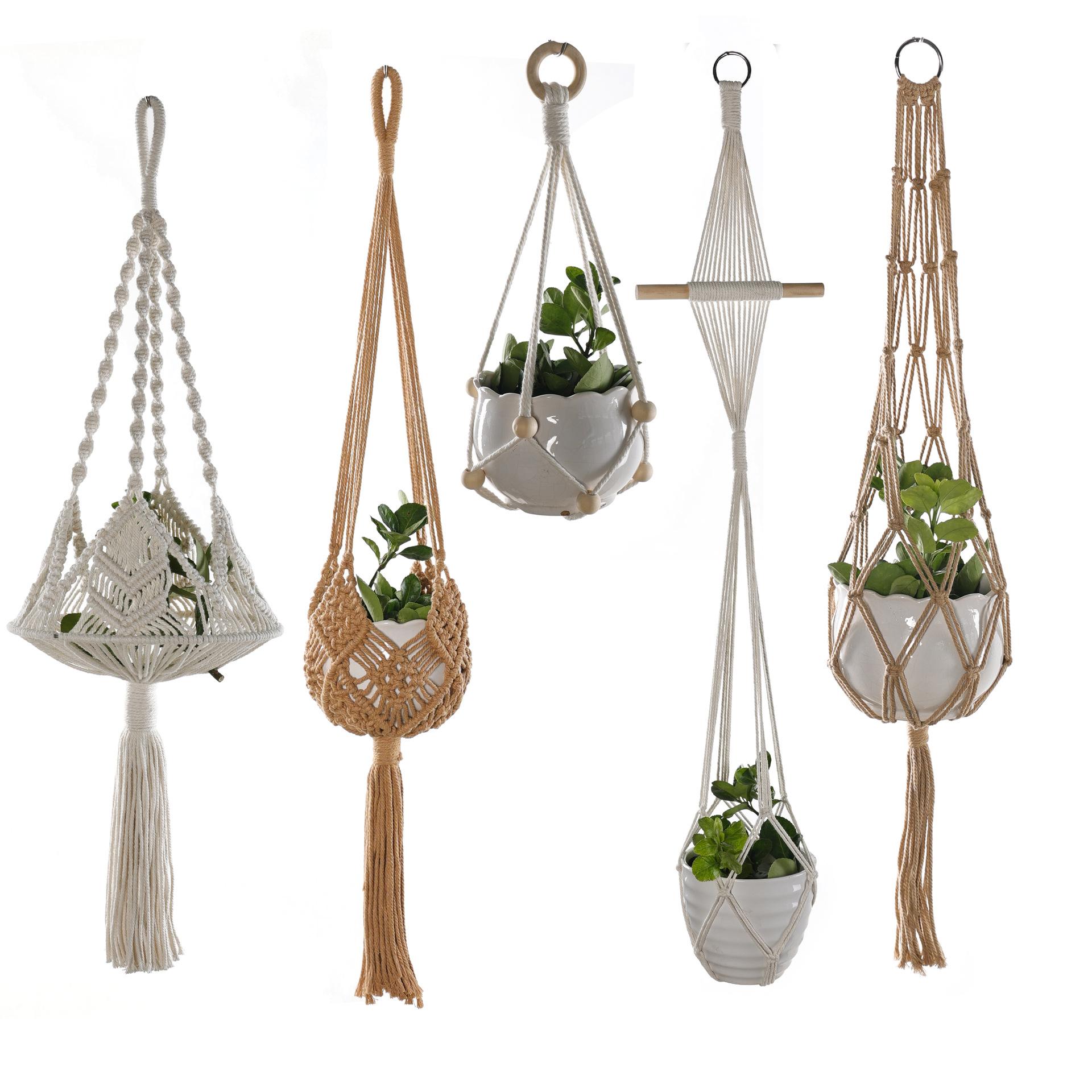 [Nuevo estilo] Cordón de algodón tejido a mano para plantas, cesta colgante, bolsa de red, colgador de macetas, soporte para plantas verdes de interior, bolsa de red