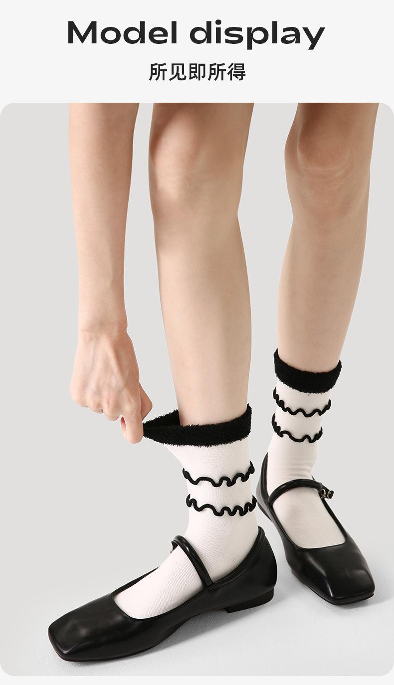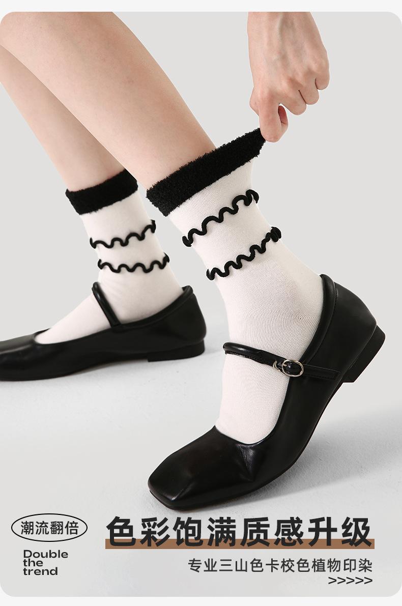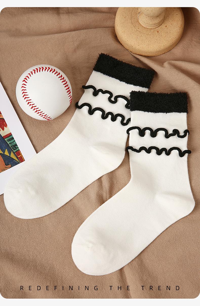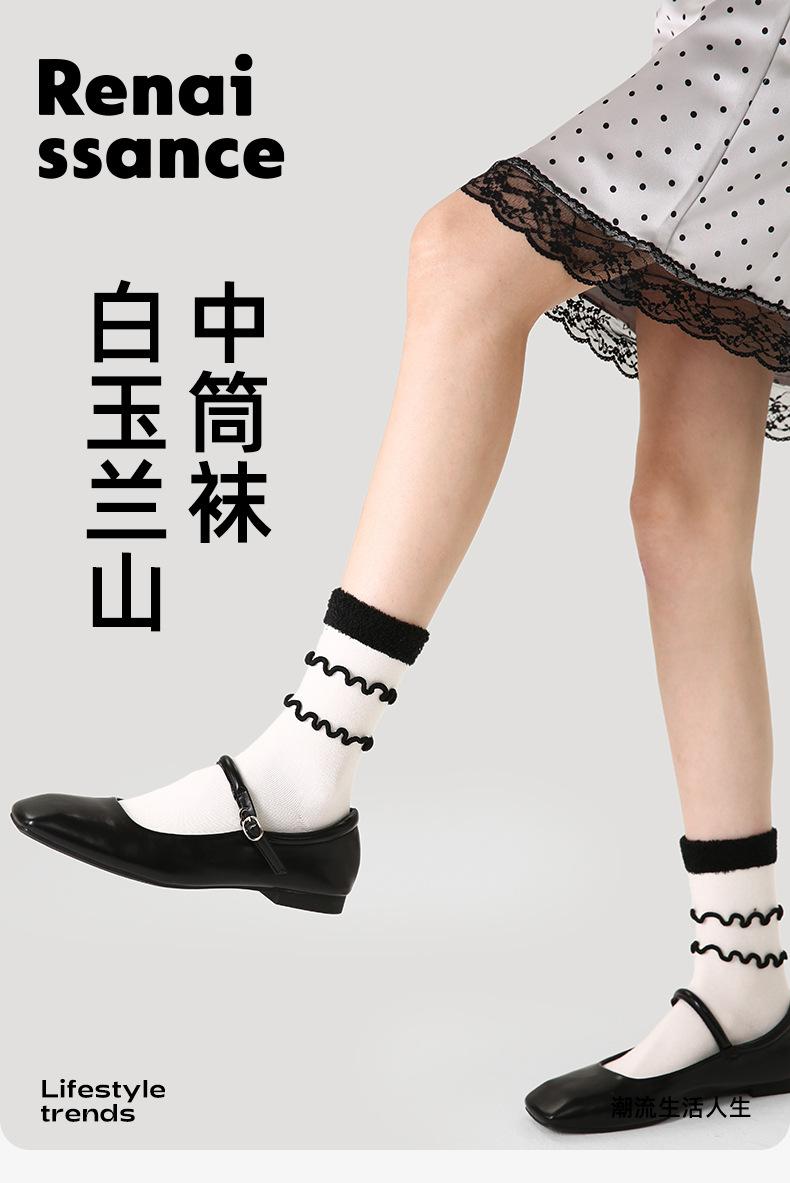 Calcetines originales renacentistas para mujer, con orejeras de madera en blanco y negro, modernos, de longitud media, deportivos, finos y transpirables.
