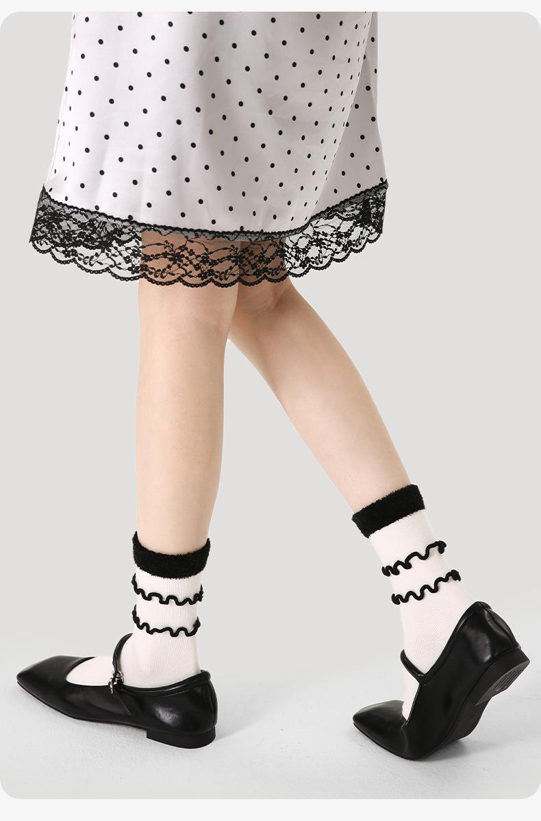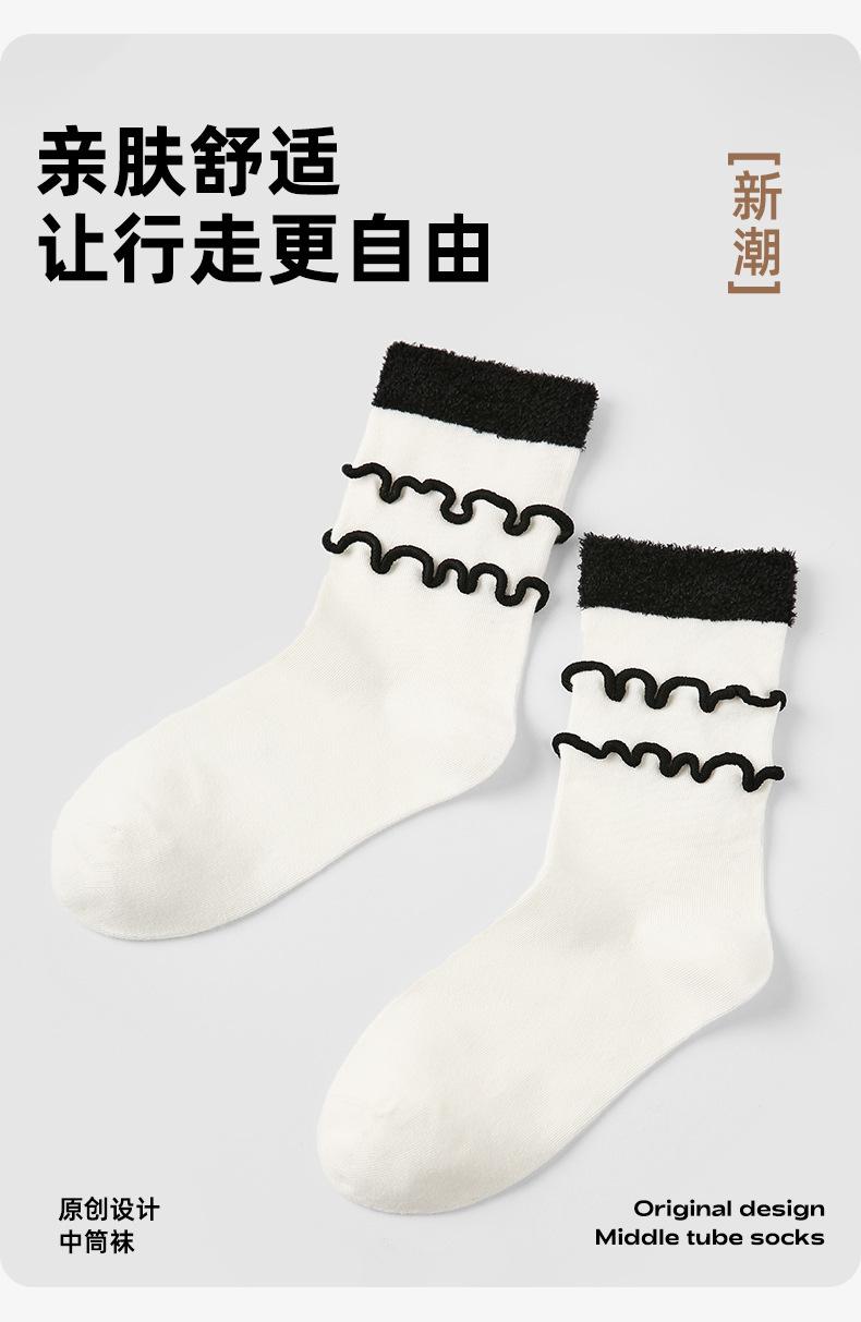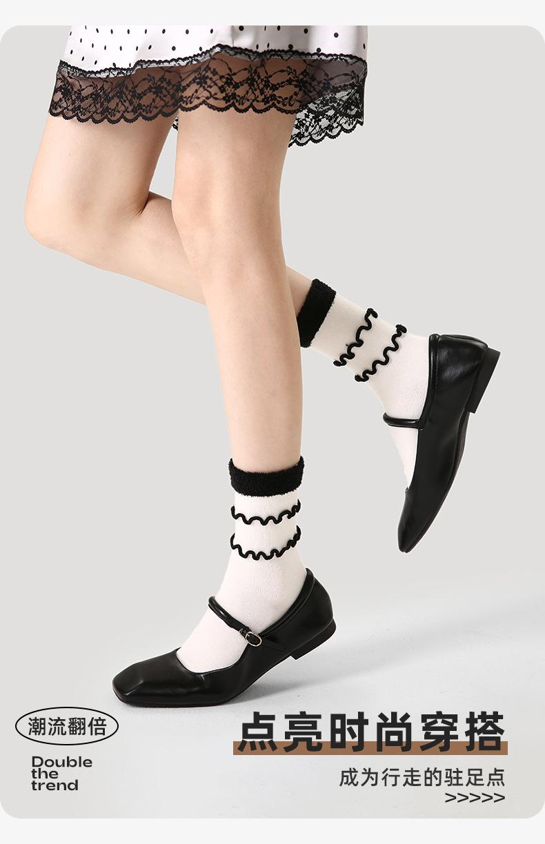 Calcetines originales renacentistas para mujer, con orejeras de madera en blanco y negro, modernos, de longitud media, deportivos, finos y transpirables.