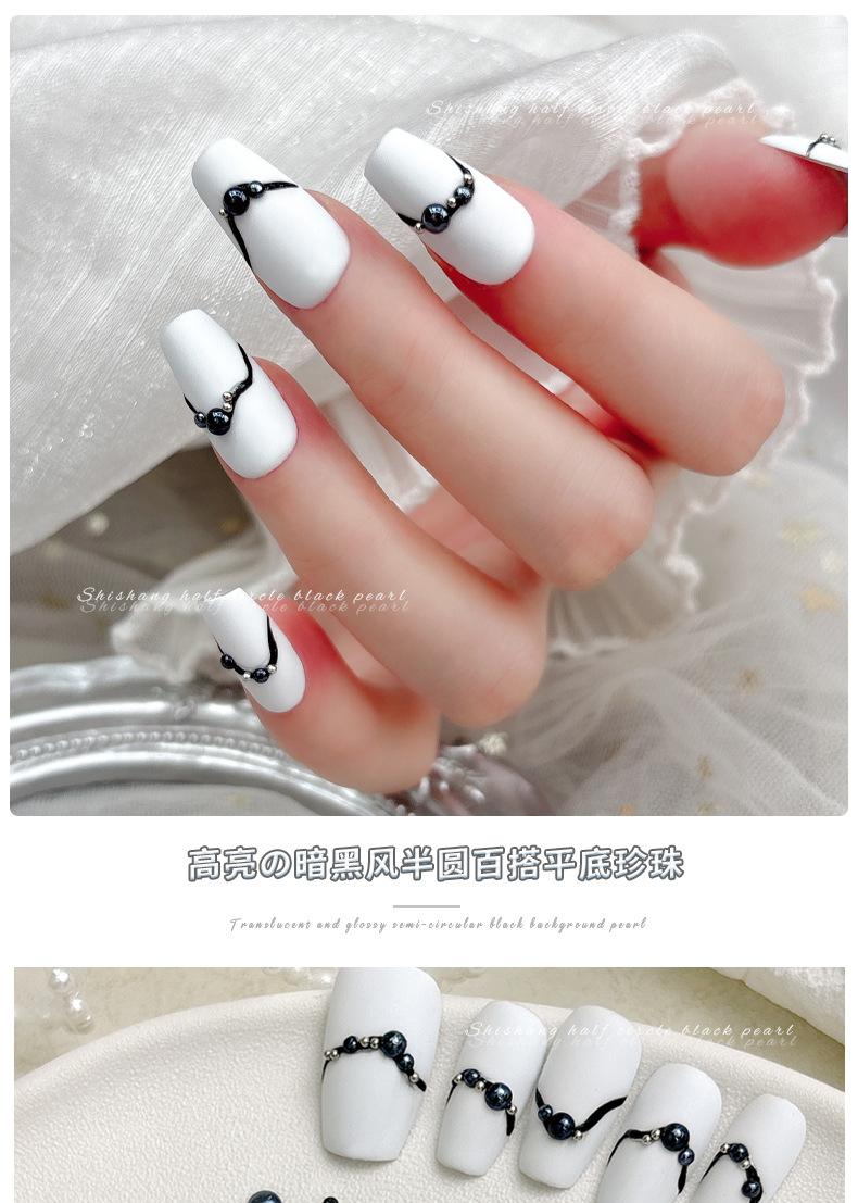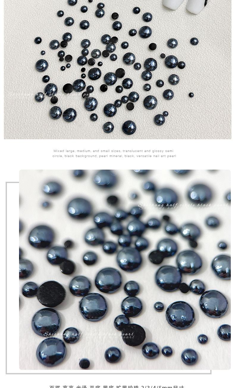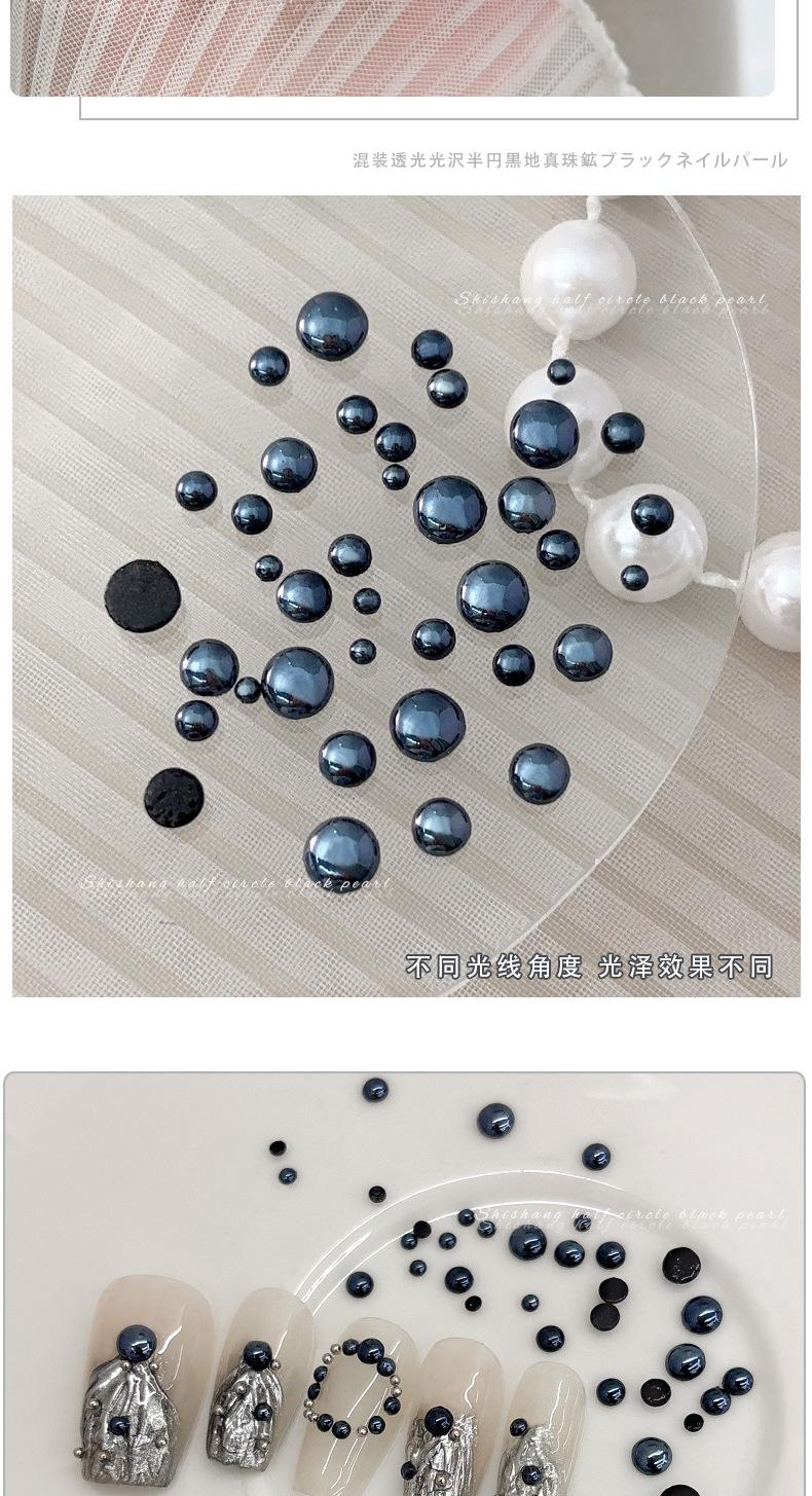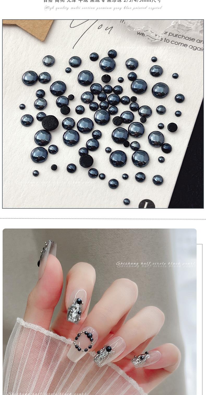 Alto Brillo Media Perla Negra Joyería para Arte de Uñas Nuevo Estilo Oscuro Diamante Fondo Plano Tamaño Grande pequeño Uso Mixto Accesorios para Uñas