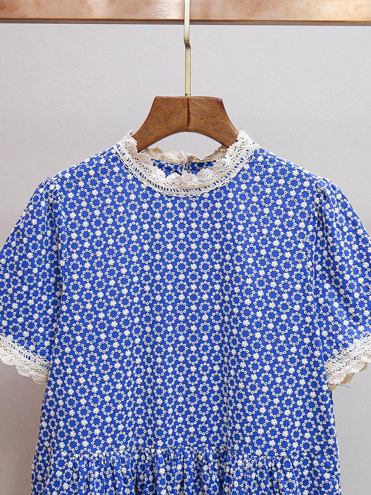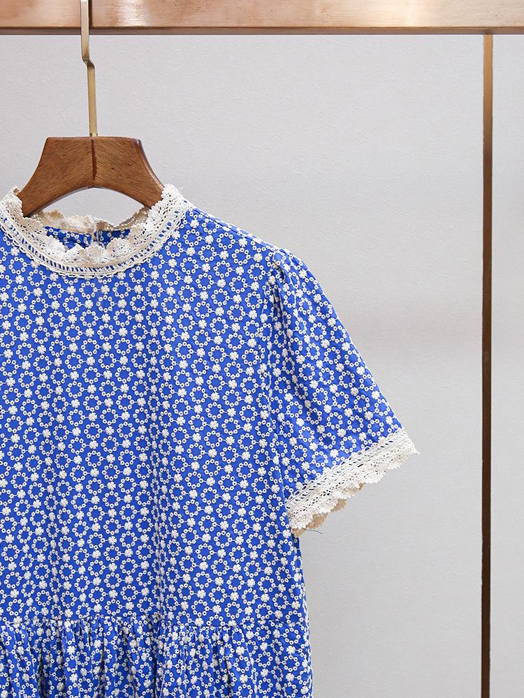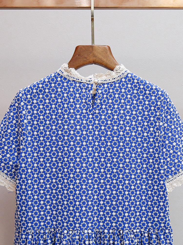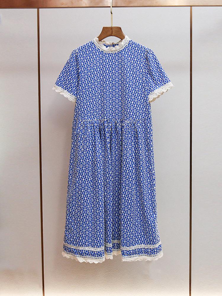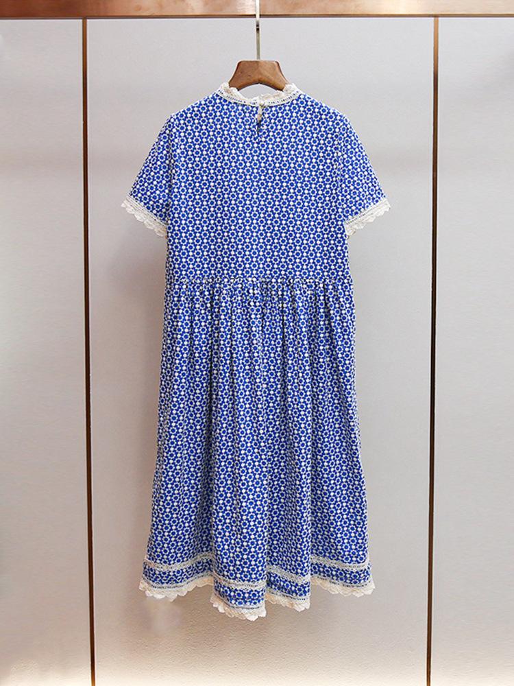 Shenzhen Nanyou Vestido de Verano Nuevo Estilo Francés para Mujer Elegante de Clase Encaje de Color Contrastante Cuello Alto Recto Bordado