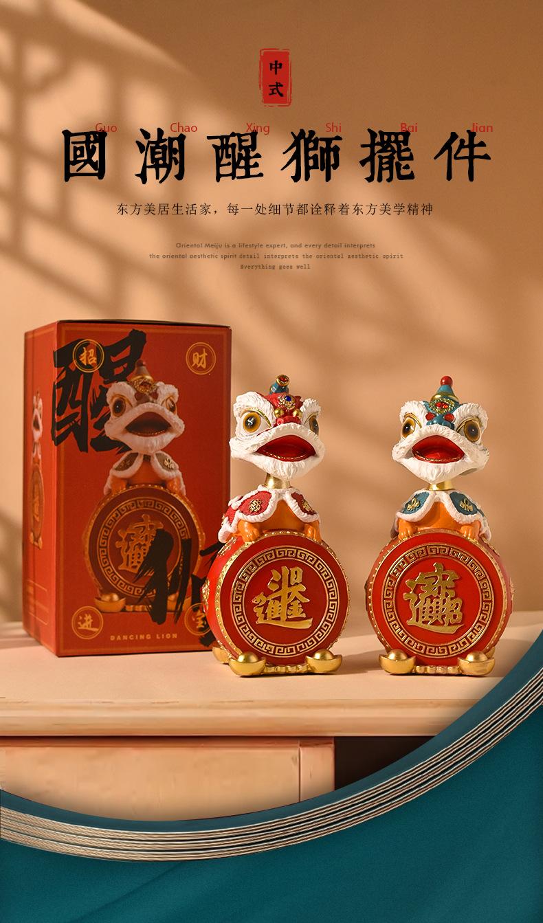 Nuevo estilo chino, decoración de la estela del león de la marea nacional, decoración del hogar, entrada de la sala de estar, vitrina de vinos, inauguración de la casa, regalo, artesanías