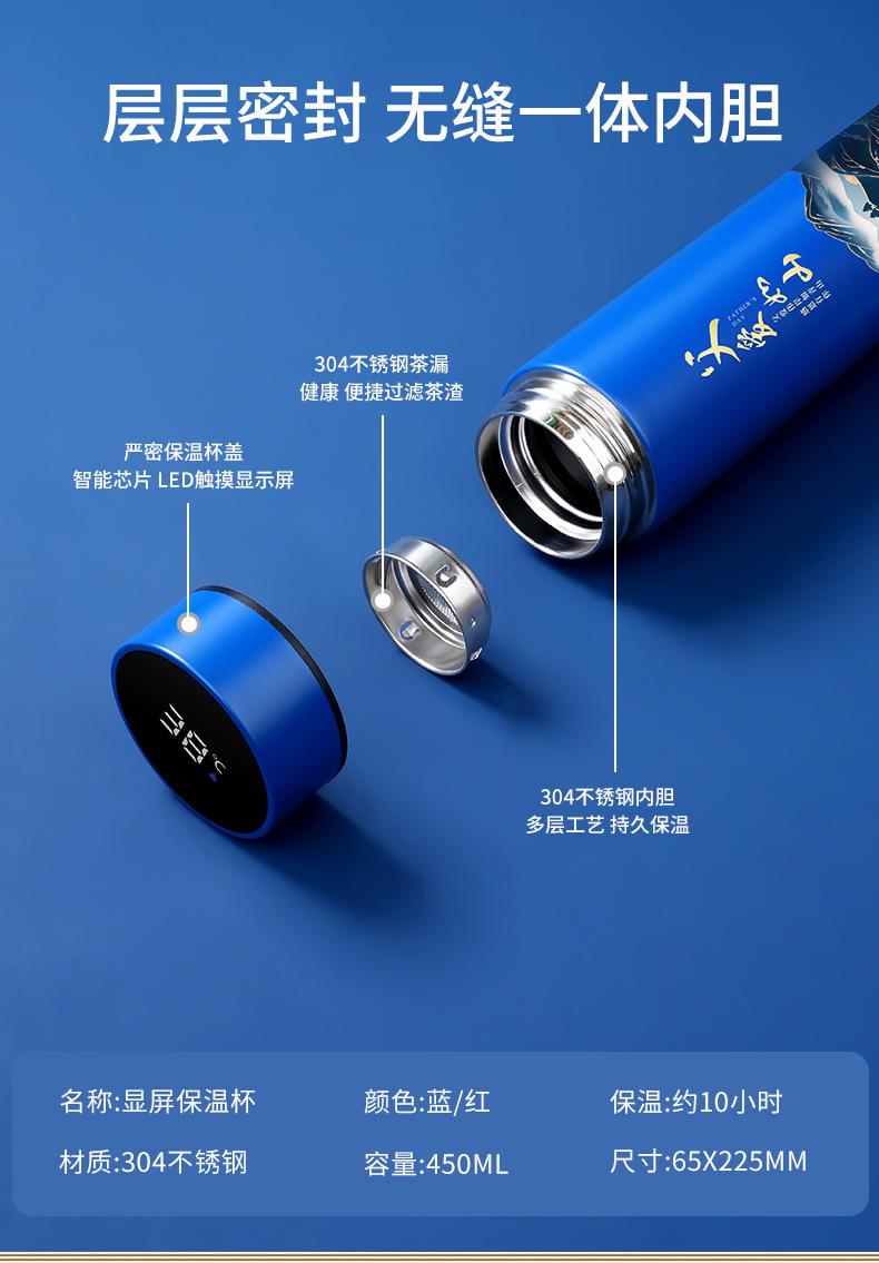 Two-piece set [digital display thermos cup + automatic umbrella] blue, Two-piece set [digital display thermos ...