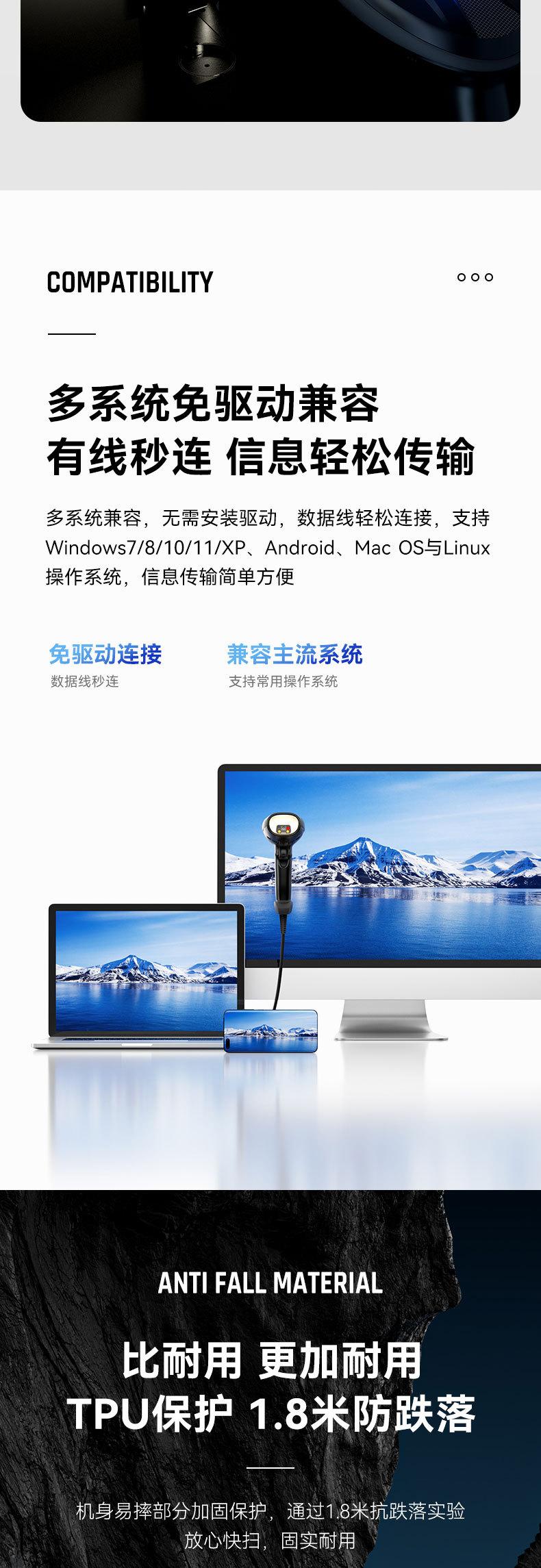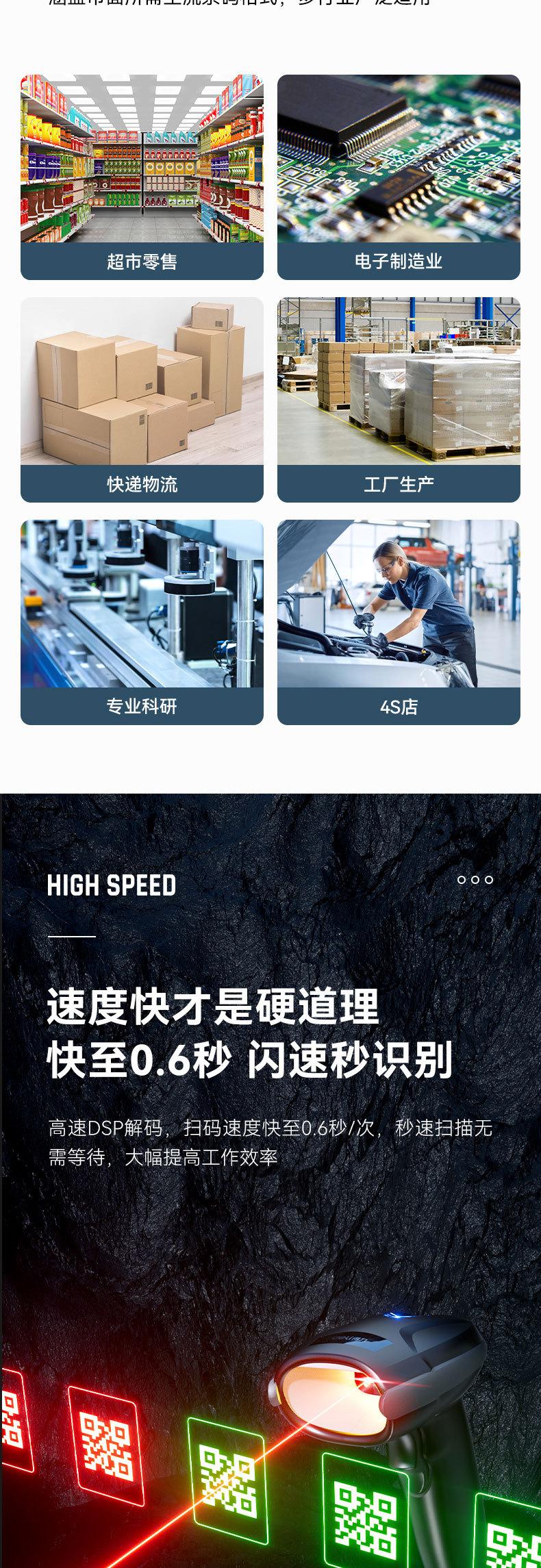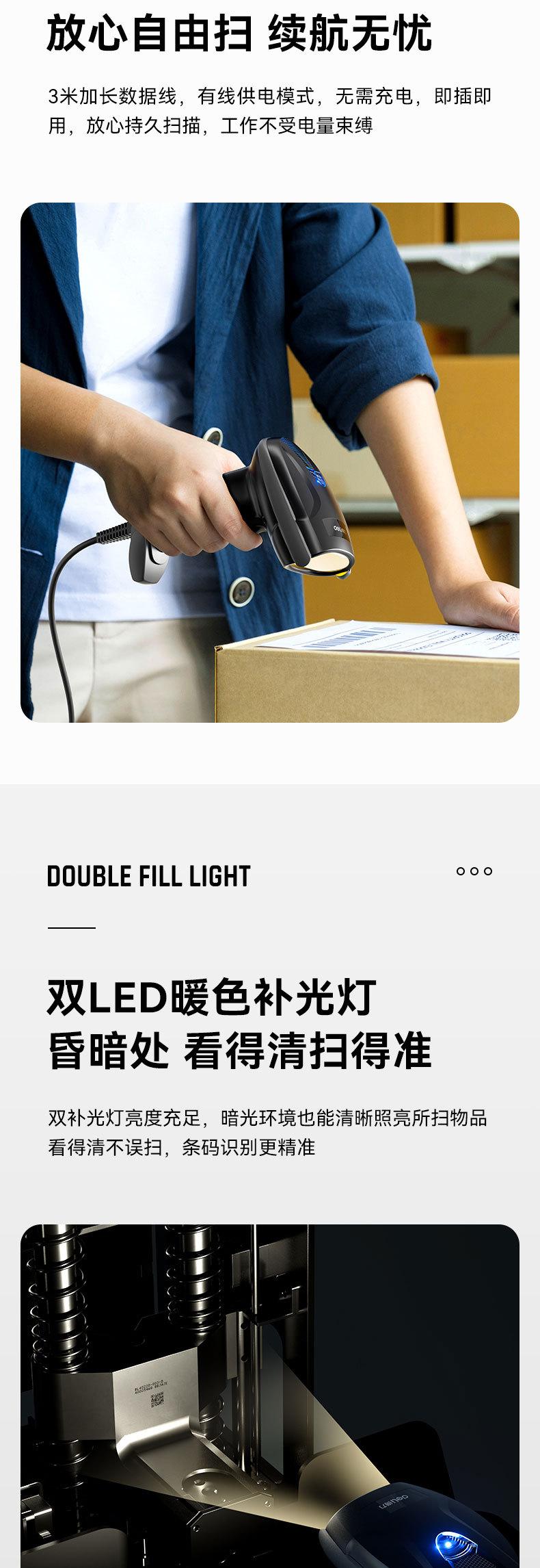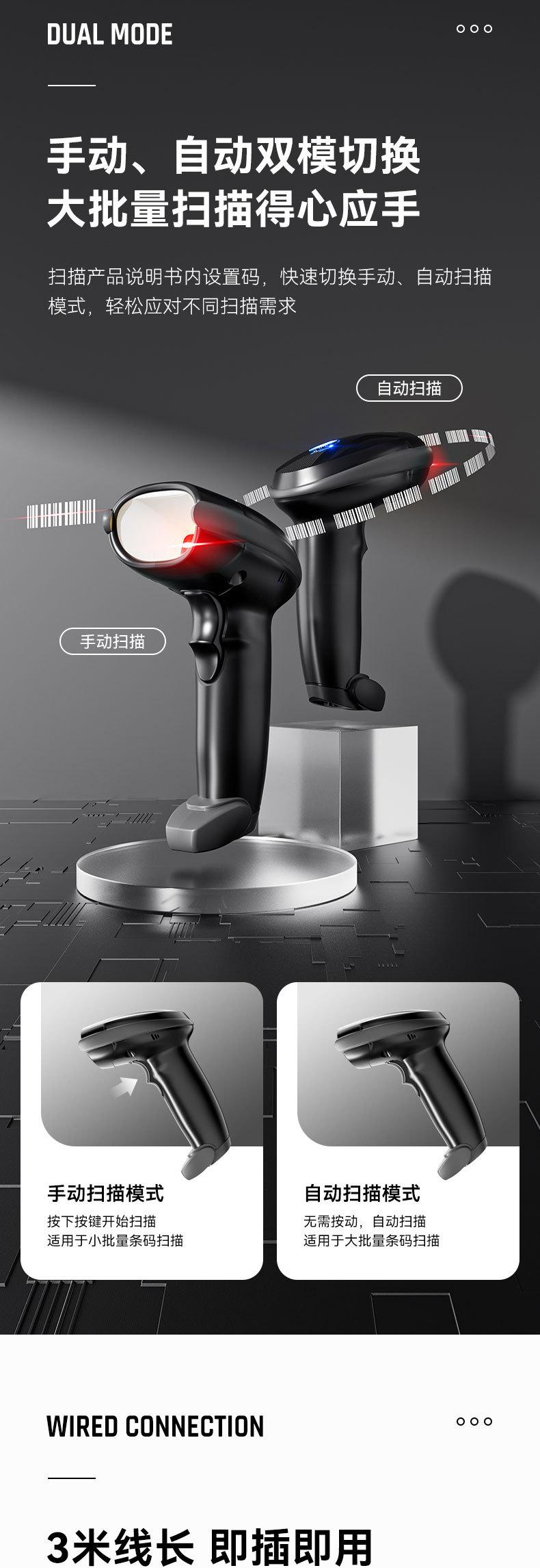 Pistola de escaneo de código industrial Deli AA711, escáner de código de barras de alta precisión y sensibilidad con cable para caja registradora de supermercado bidimensional