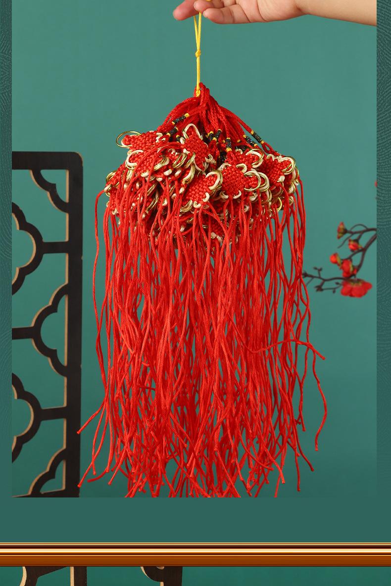 Red gold edge chinese knot, Yellow gold edge chinese knot, Red ears, Yellow tassel, Pure red chinese knot