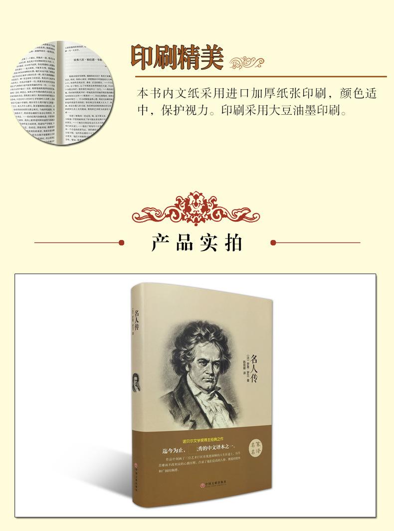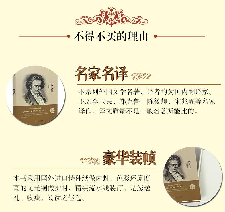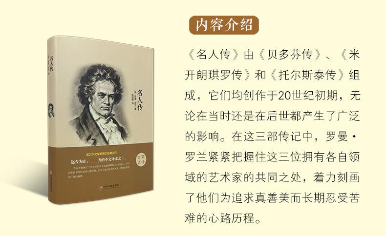 "La vida de los grandes hombres" es una obra biográfica escrita por Romain Rolland (1866-1944), un famoso escritor realista crítico francés de finales del siglo XIX y principios del XX. Incluye tres biografías: "La vida de Beethoven" (1903), "La vida de Miguel Ángel" (o traducido como "Miguel Ángel") (1906), y "La vida de Tolstói" (1911), con un total de 268.000 palabras. Se le llama "las biografías de los tres grandes héroes" y también se conoce como "las tres biografías de gigantes". Este libro también confirma muy bien un viejo dicho chino: aquellos que han logrado grandes cosas en tiempos antiguos y modernos no solo tienen talentos extraordinarios, sino también perseverancia.