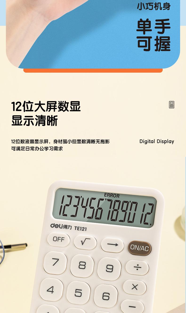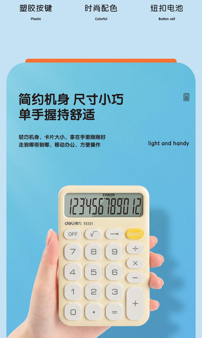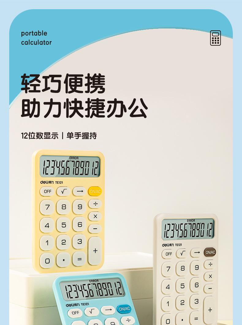 Calculadora Deli de tamaño pequeño a color, bonita computadora portátil de mano, para estudiantes, oficina, contabilidad, pantalla grande