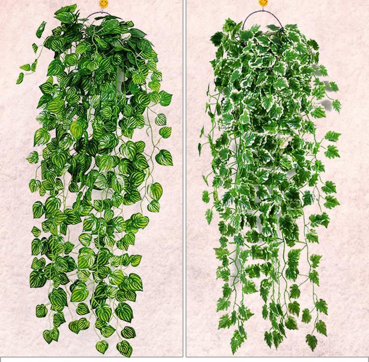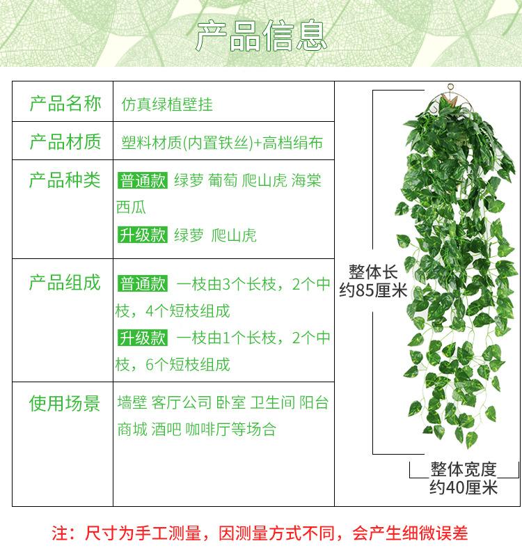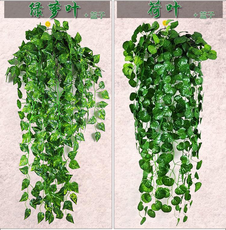 Planta de simulación ratán colgante de pared vid de flor falsa planta verde colgante de pared cesta decoración de techo hoja de uva venta al por mayor