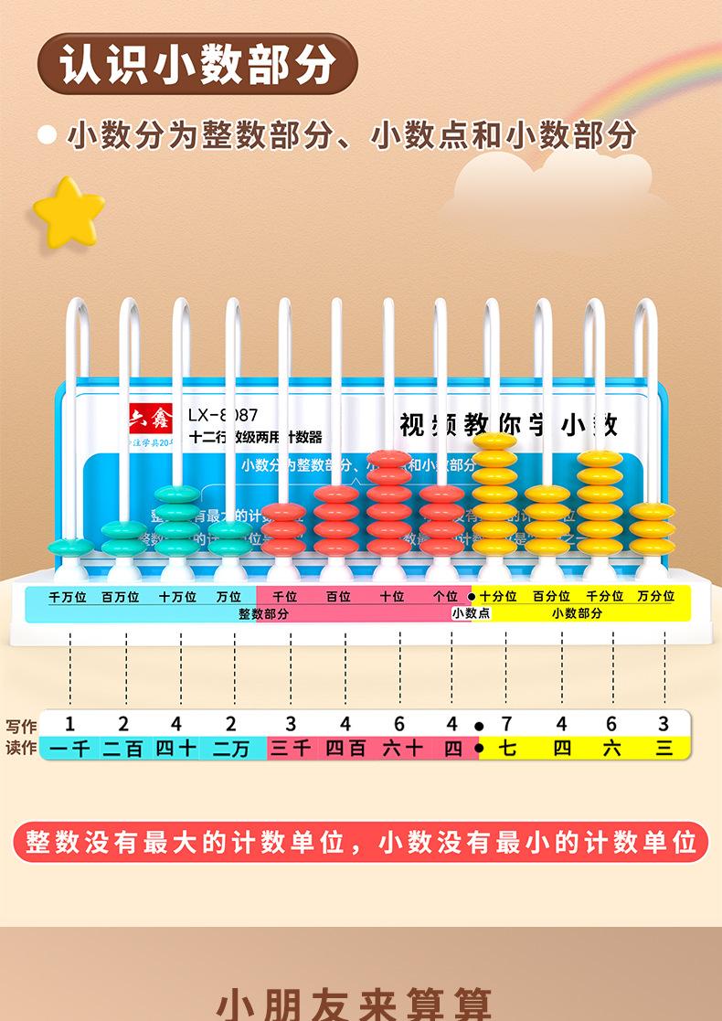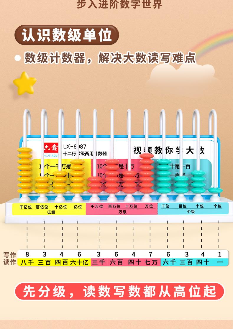 Contador para Estudiantes de Tercer y Cuarto Grado de Primaria, Ábaco Matemático, Aprendizaje con Ábaco, Soporte de Cálculo Vertical de 12 Filas