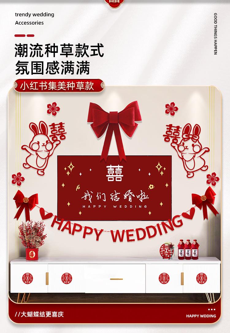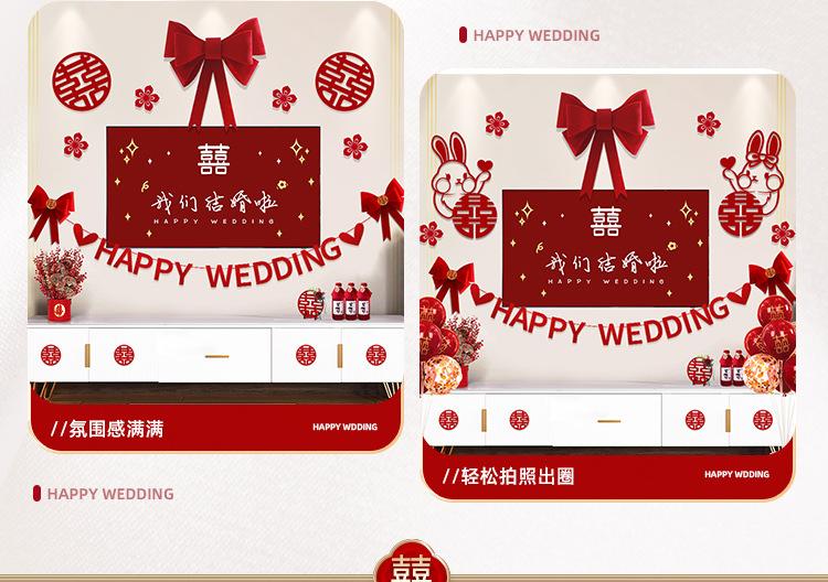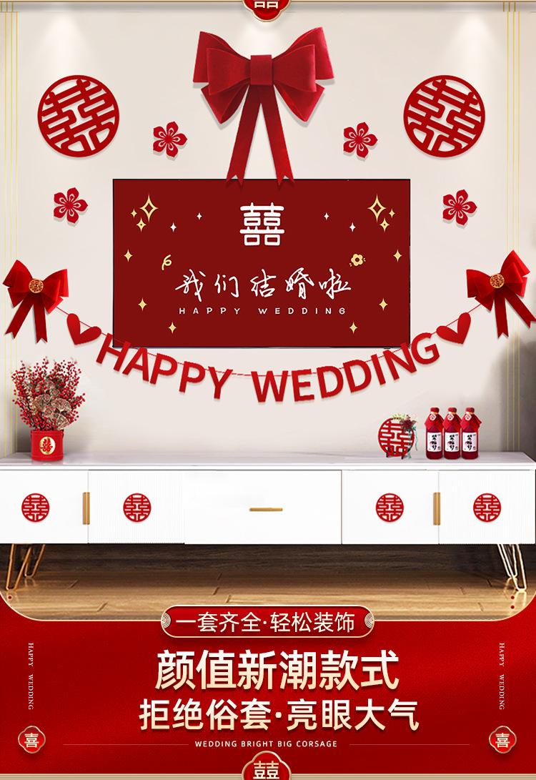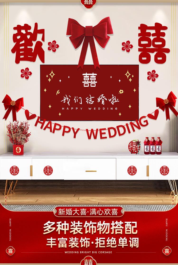 Traje de decoración para la habitación de bodas, sala de estar, pared de fondo para TV, decoración, boda, casa nueva para hombres y mujeres, palabra feliz, flor, suministros para compromiso