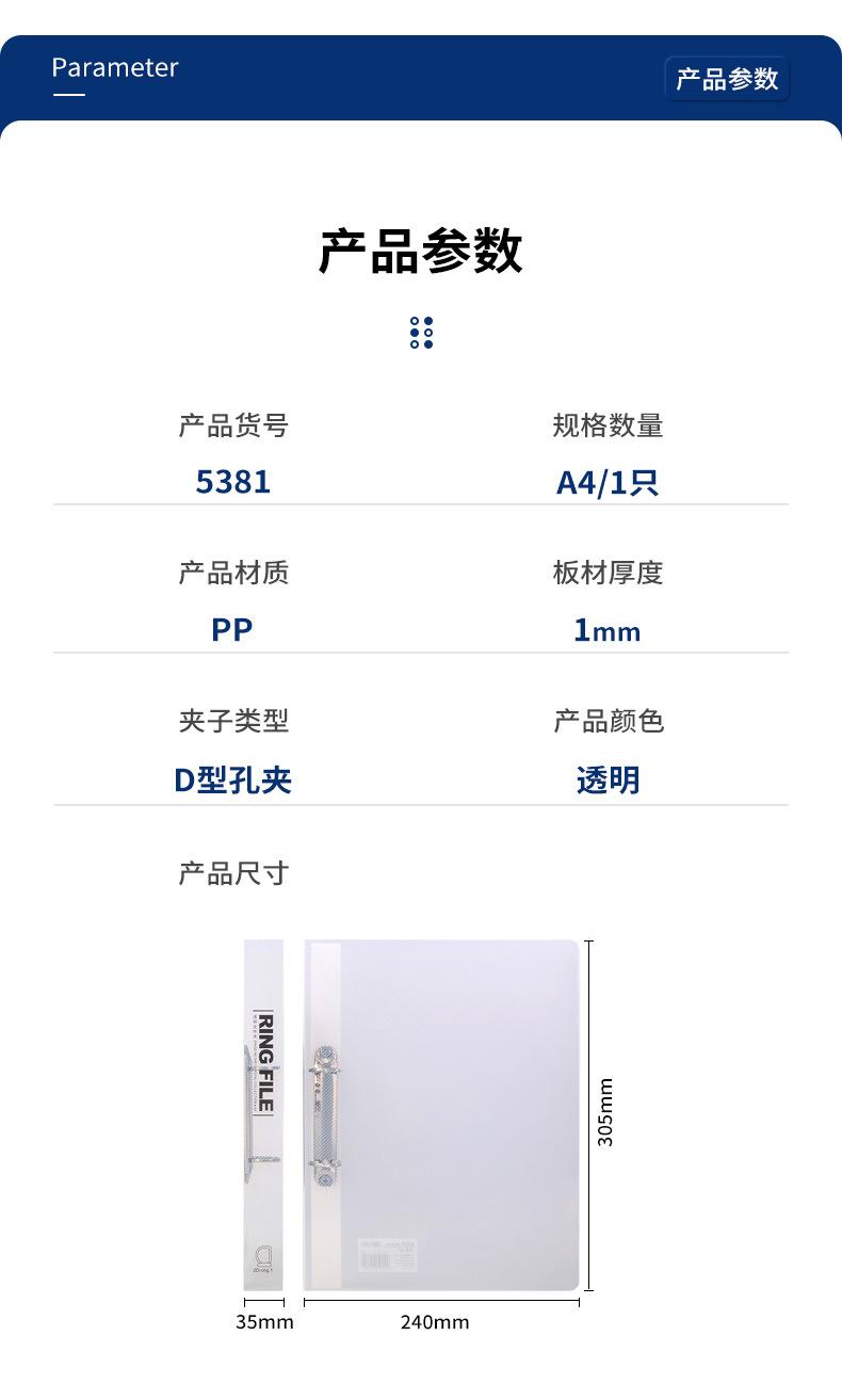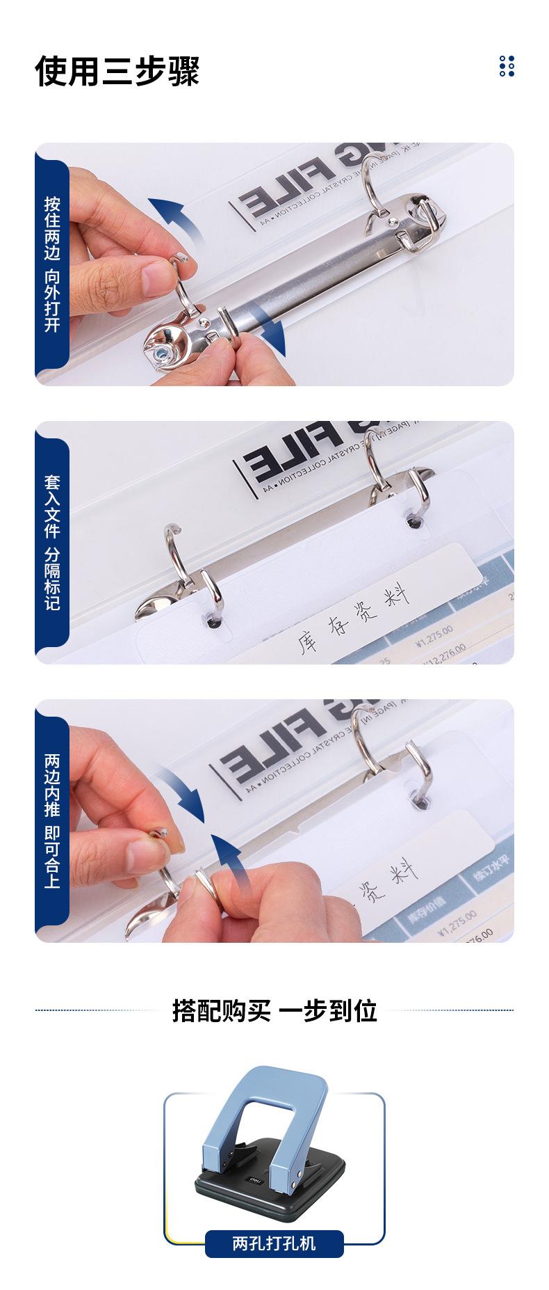 Deli Carpeta A4 de hojas sueltas blanca inserción perforada carpeta de doble orificio papelería de oficina 5381
