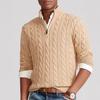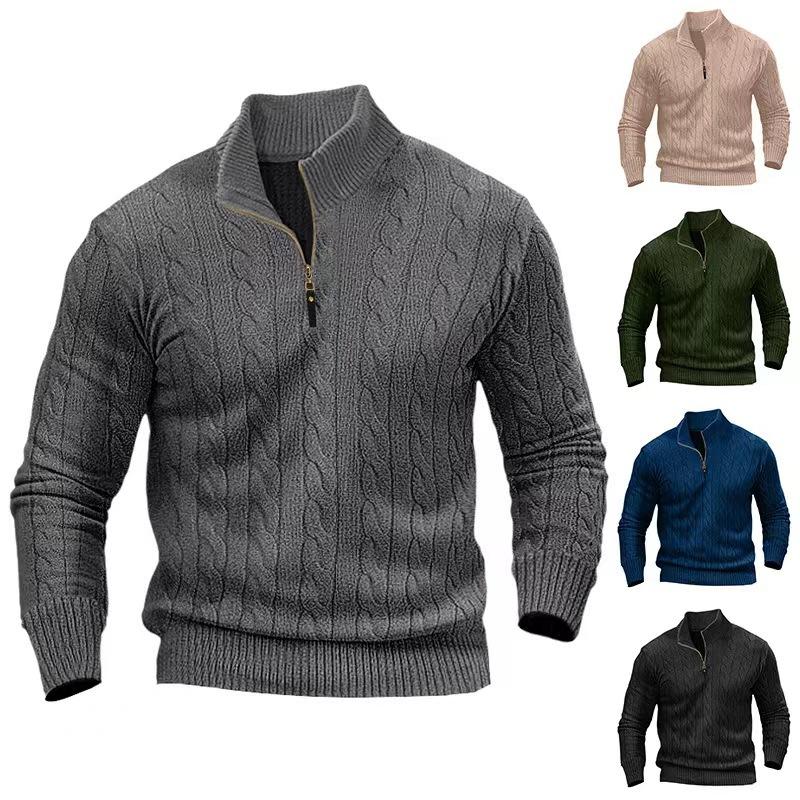 2025 Tejido de Punto Trenzado Europeo y Americano para Hombre Transfronterizo Amazon Medio Cierre de Cremallera Cuello Alto Casual Cálido Tejido de Punto Camiseta Base
