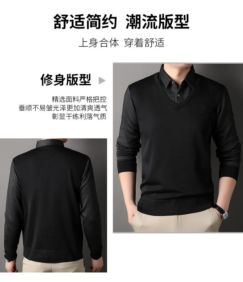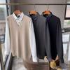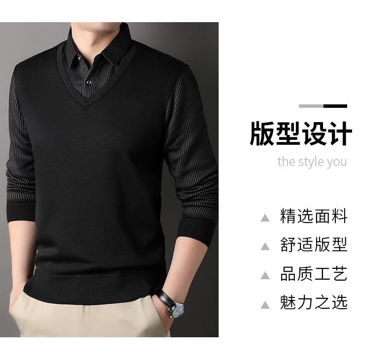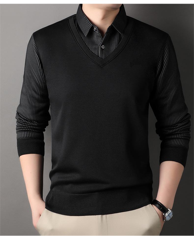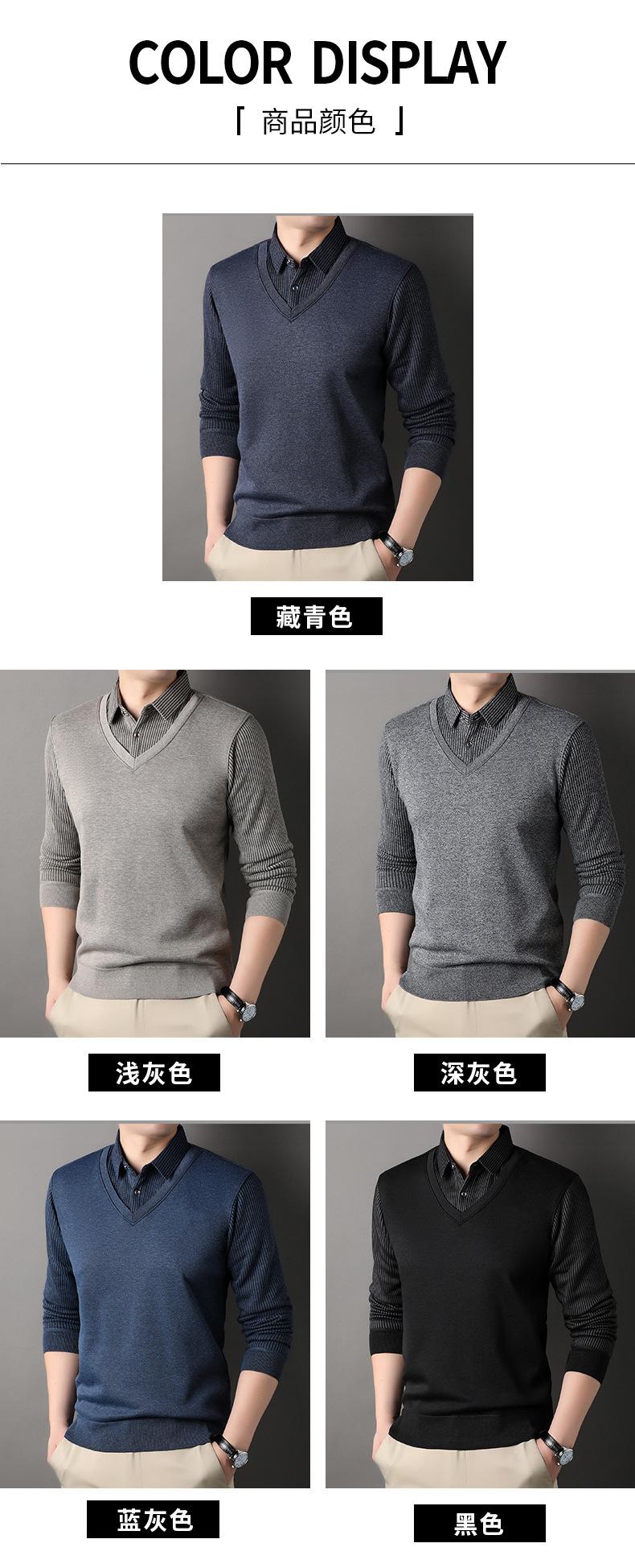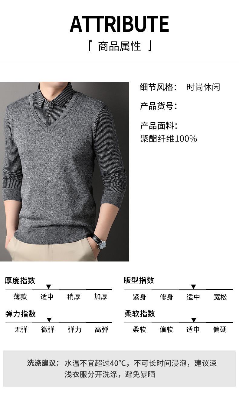 Otoño e invierno 2023, nuevo cárdigan de punto de dos piezas falso para hombre, versátil abrigo con cuello de camisa, suéter para hombre, ropa interior, comercio exterior