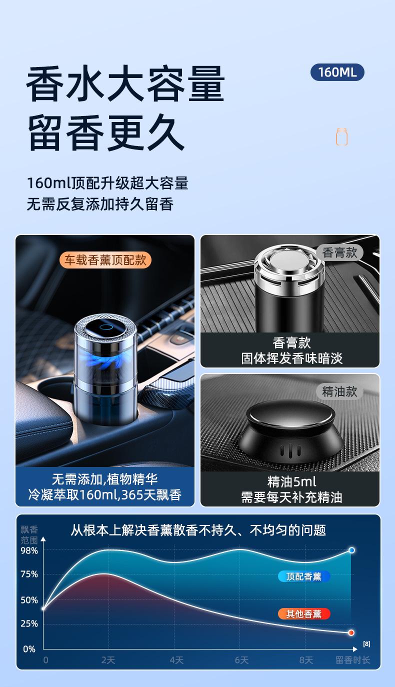¡Este es el difusor de aroma turbo para encendido y apagado automático de coche mejorado que estás buscando! ! Adopta un diseño de portavasos, lleno de personalidad, el difusor de aroma con ventilador turboalimentado tiene dos velocidades ajustables, control táctil, y todo el coche huele fragante después de encenderlo. Utiliza aceites esenciales extraídos de plantas, que son más seguros y pueden hacer que el aire en el coche sea más fresco.