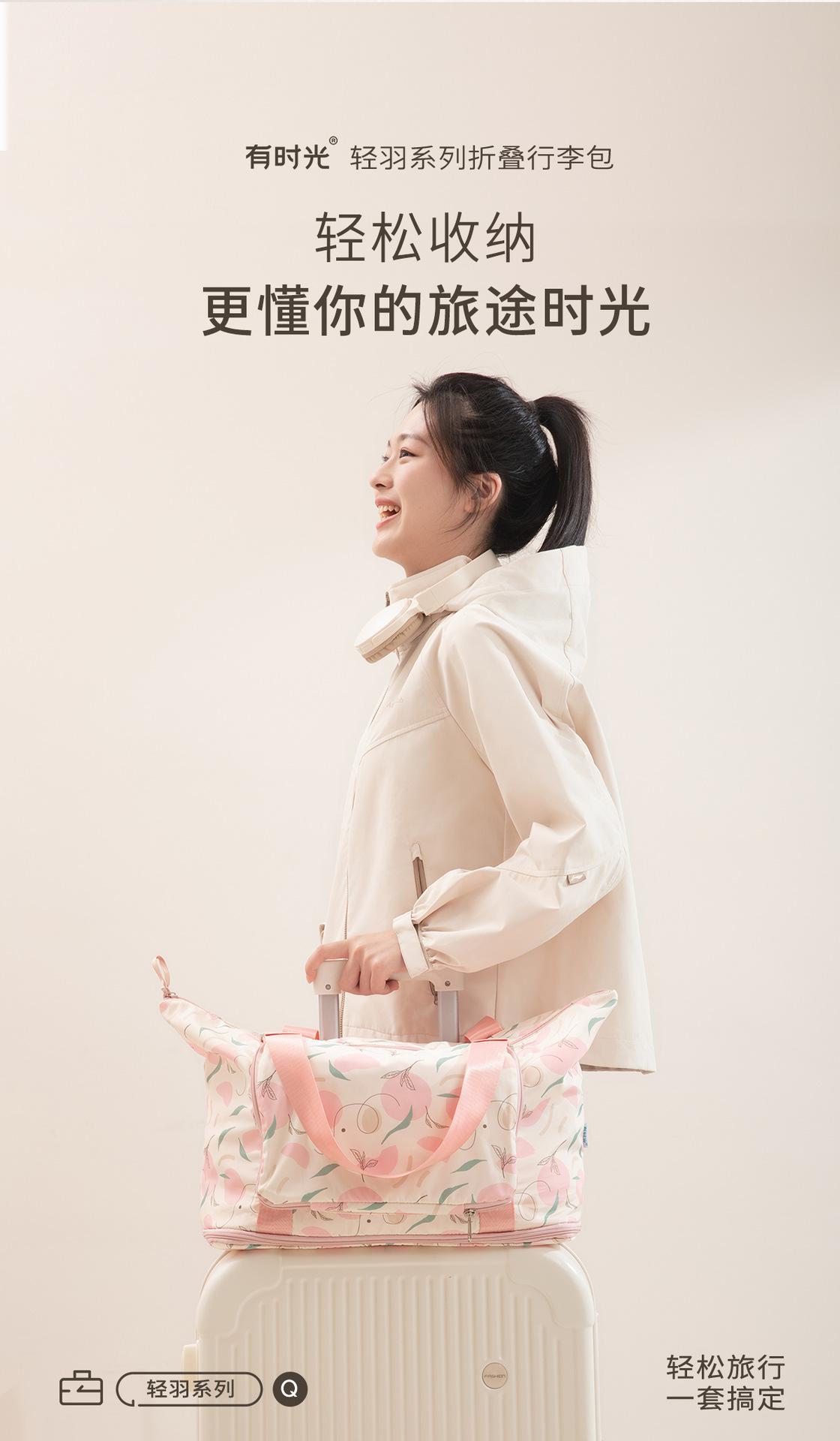[large capacity] foldable luggage bag-peach pink, [lightweight and large capacity for storage] travel backpack-peach pink