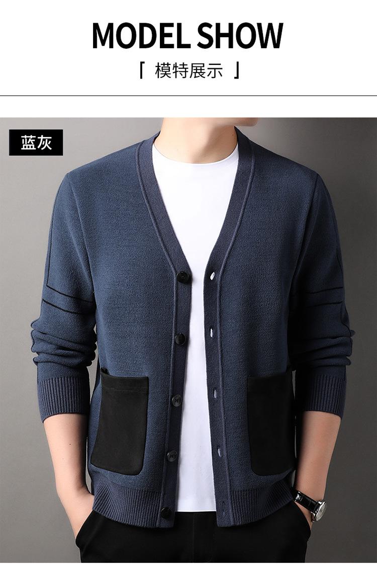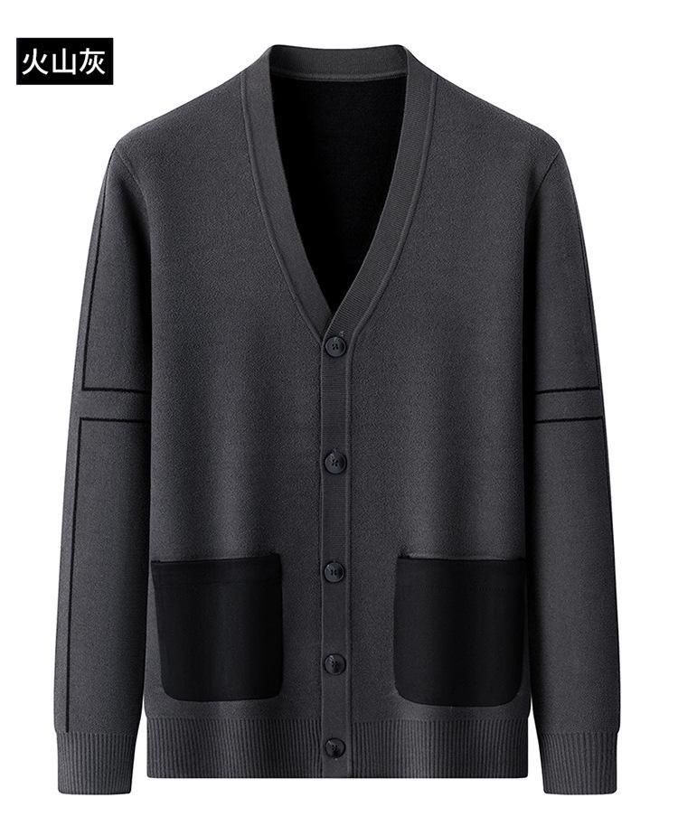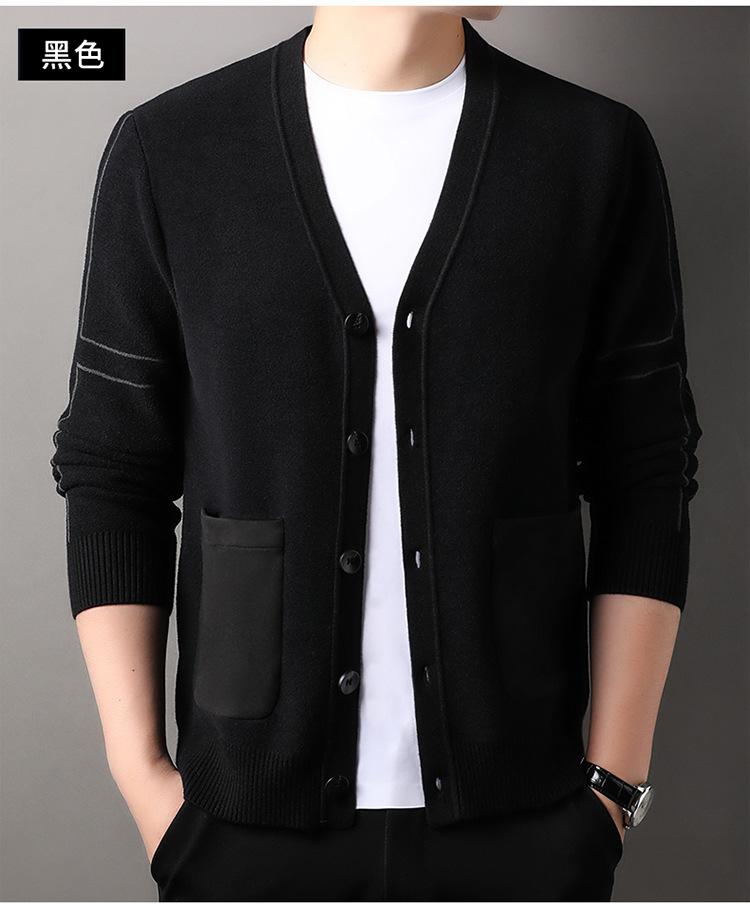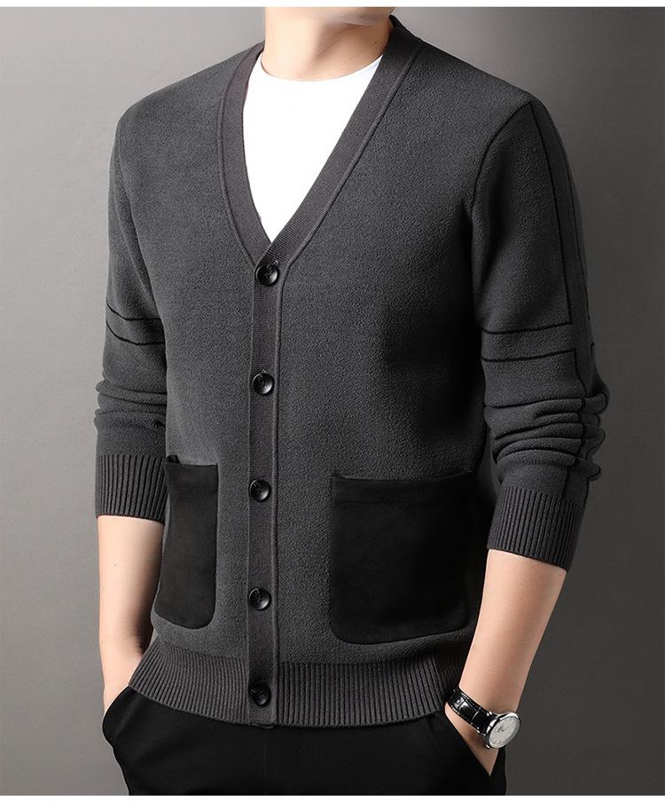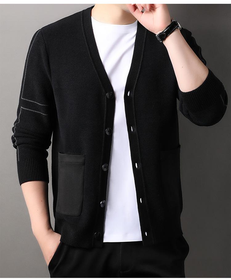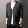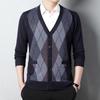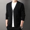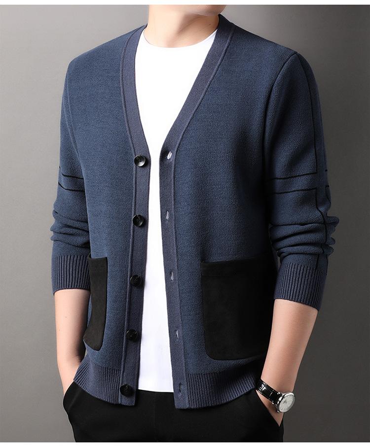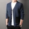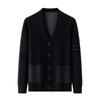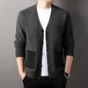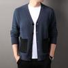 Suéter cárdigan de manga larga con cuello en V en contraste para hombre joven y de mediana edad, informal, de otoño, ropa de moda ajustada y elástica.