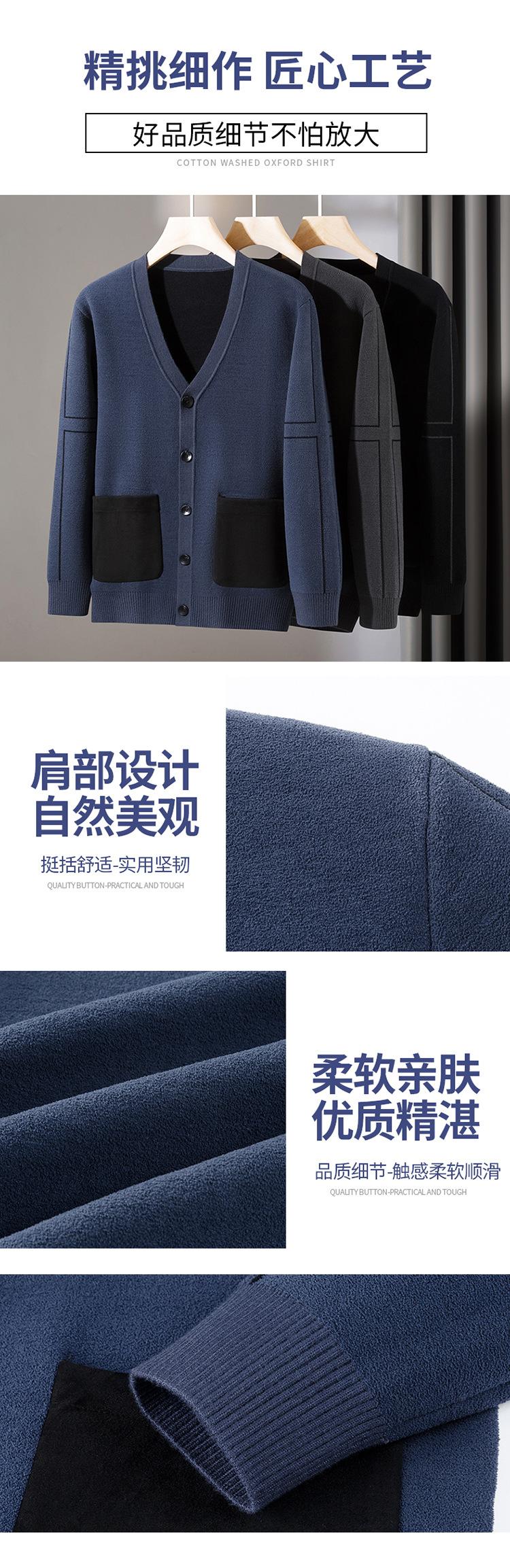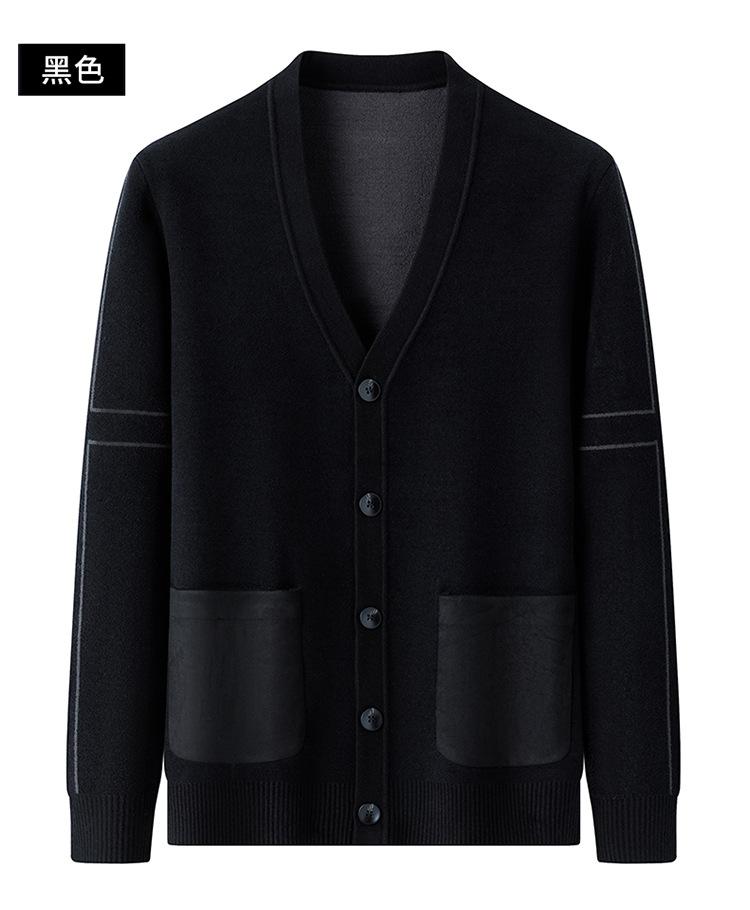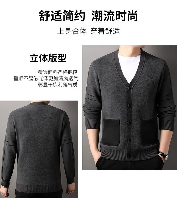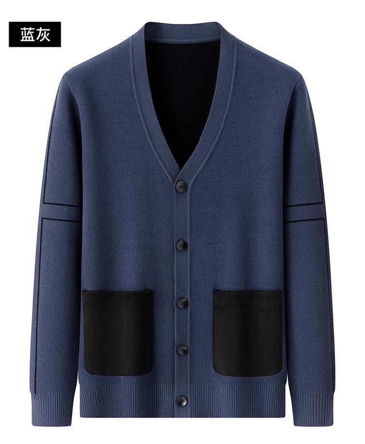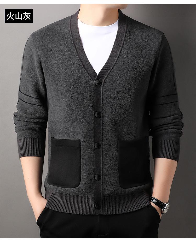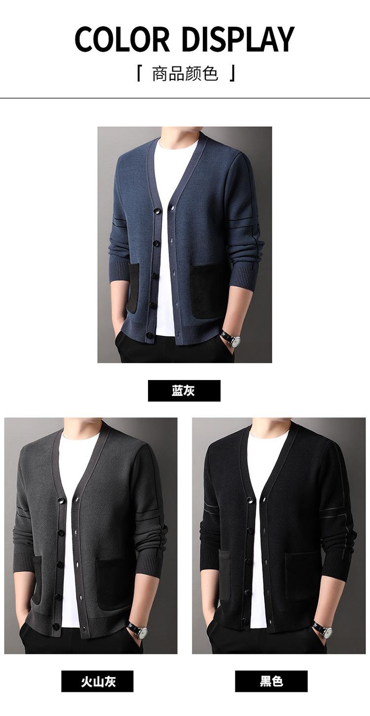 Suéter cárdigan de manga larga con cuello en V en contraste para hombre joven y de mediana edad, informal, de otoño, ropa de moda ajustada y elástica.
