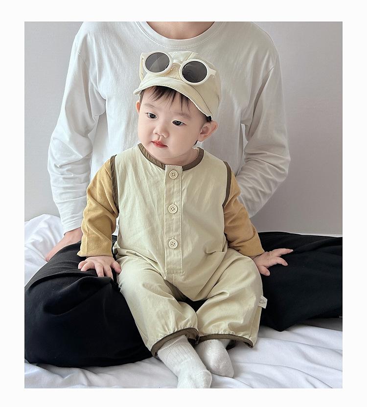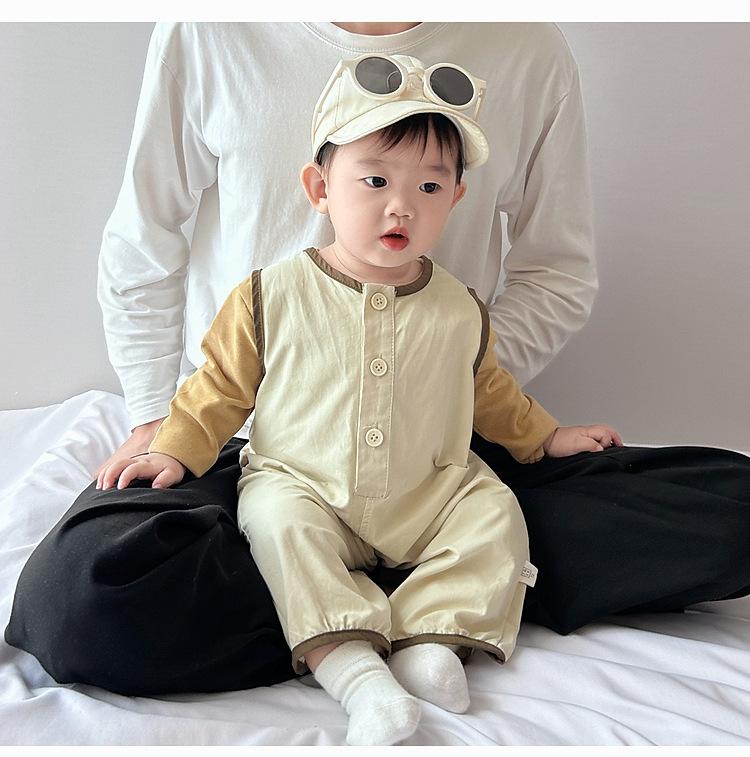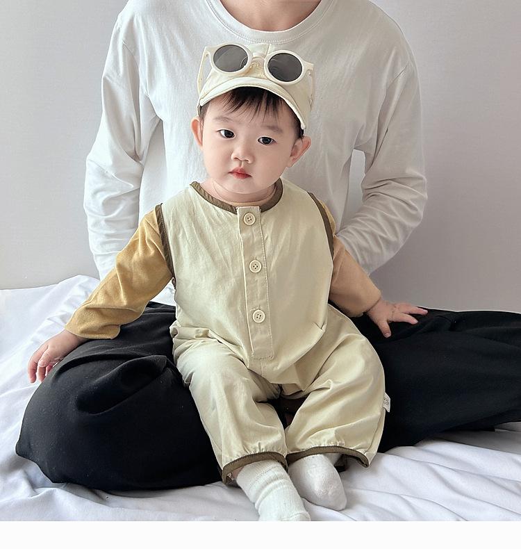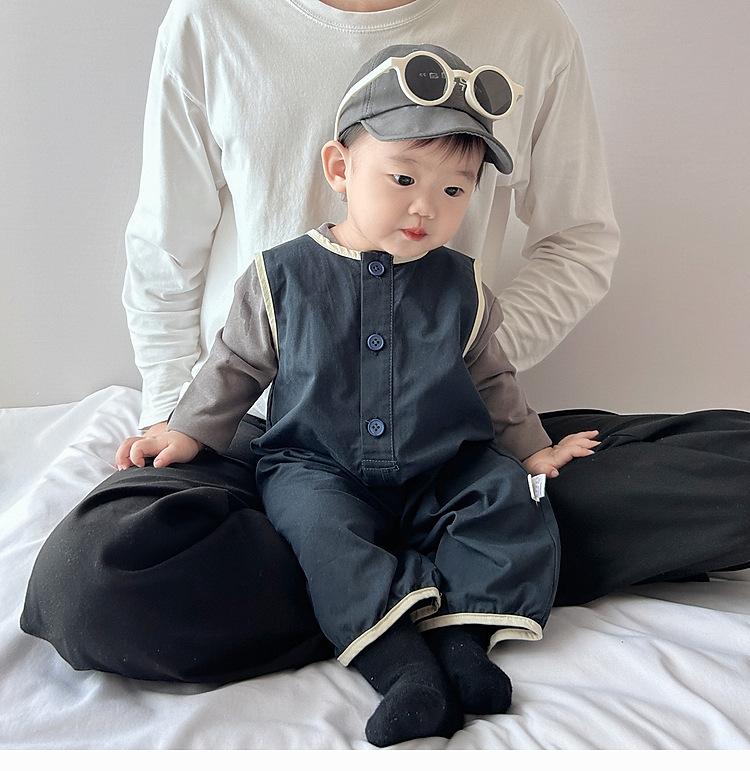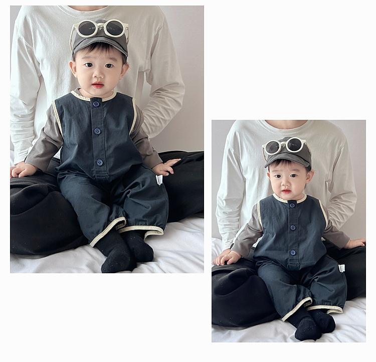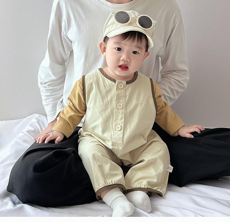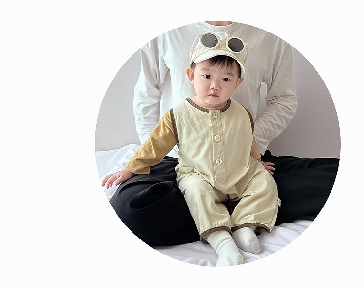 Apricot romper, navy blue romper suit, Yellow romper, yellow bottoming shirt, Gray bottoming shirt