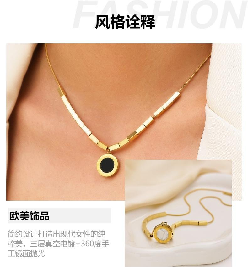 High-end niche design black and white double-sided Roman mother-of-pearl pendant clavicle chain necklace necklace for women