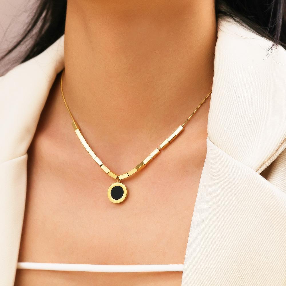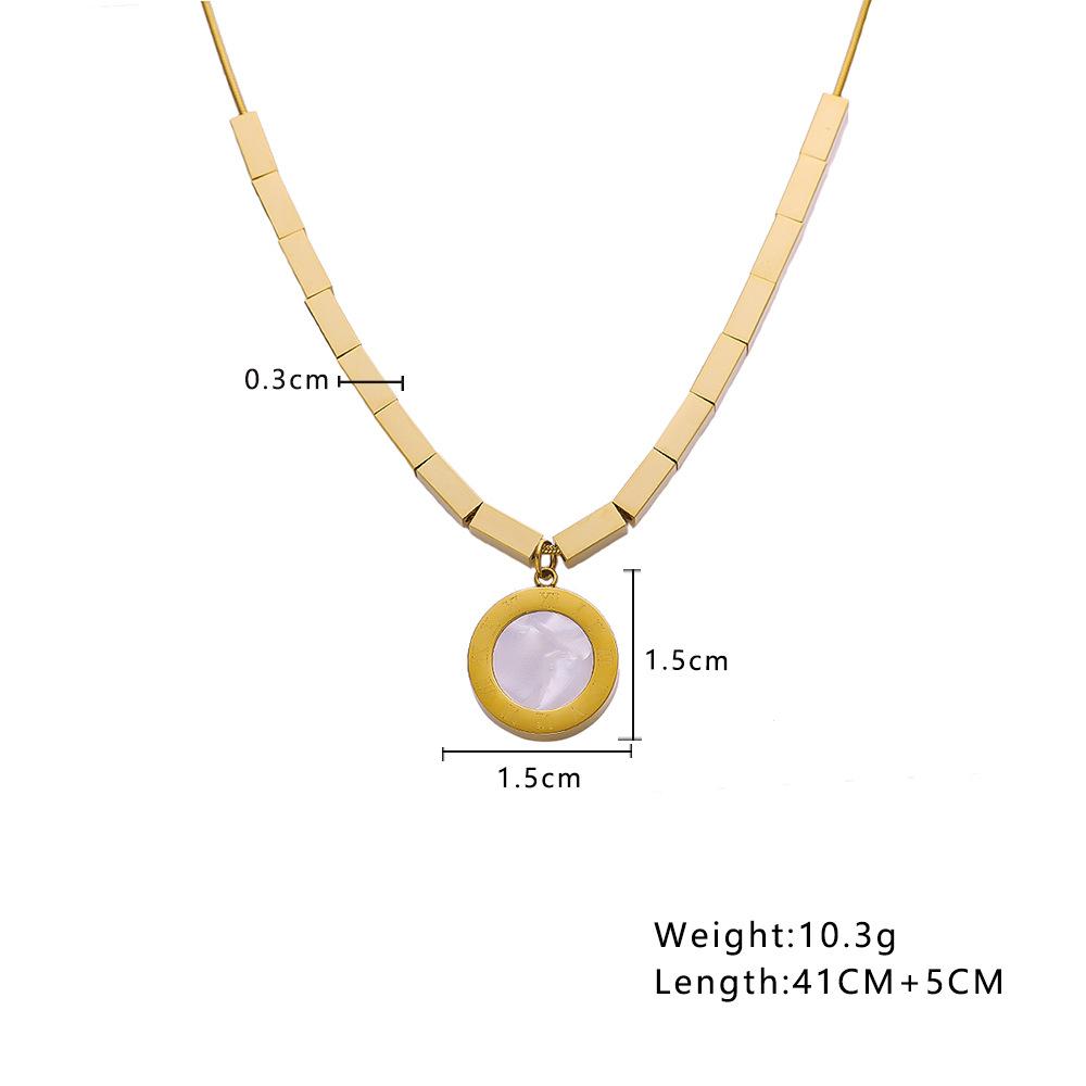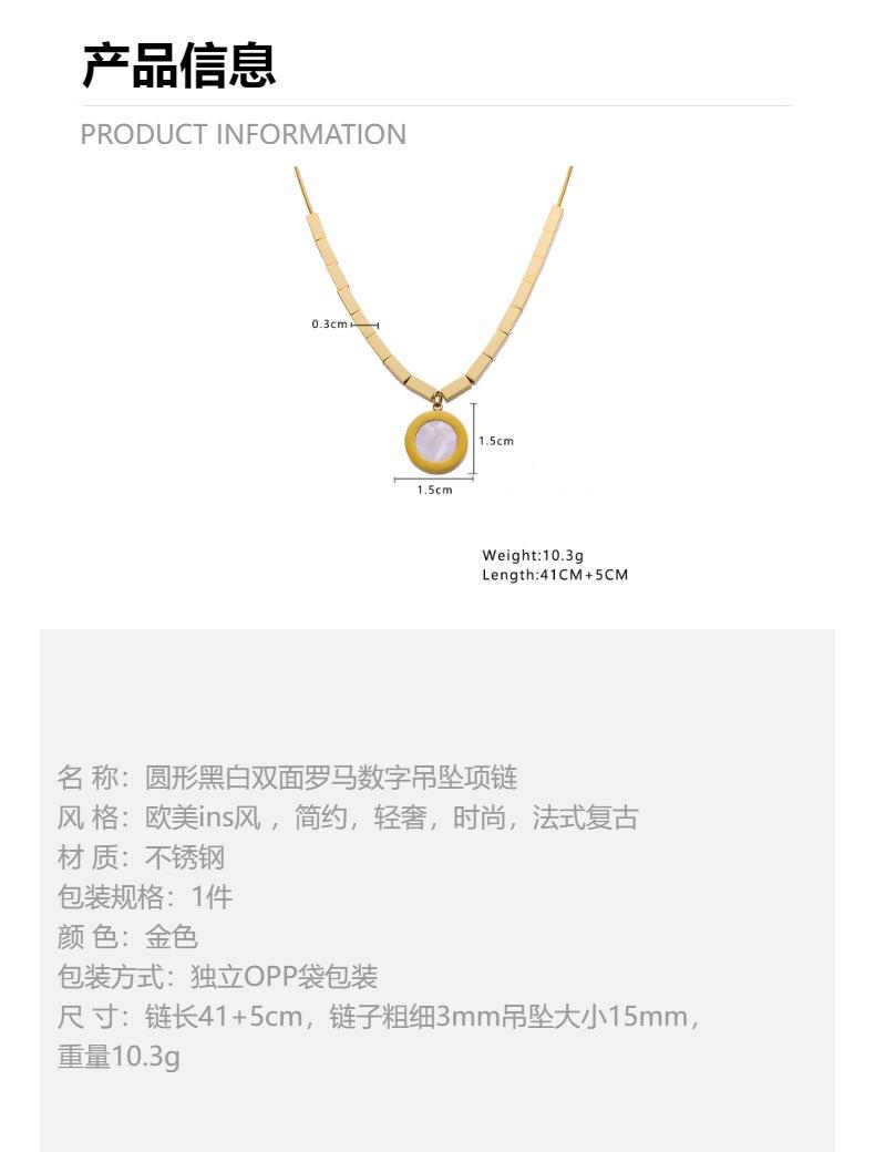 Cadena para Suéter Europea y Americana Ins de Acero Inoxidable, Cadena de Clavícula Simple y Versátil, Collar con Colgante Redondo Romano Blanco y Negro de Doble Cara