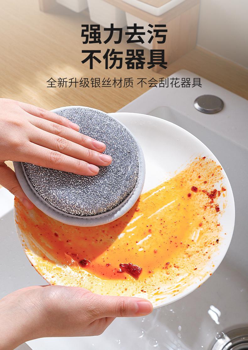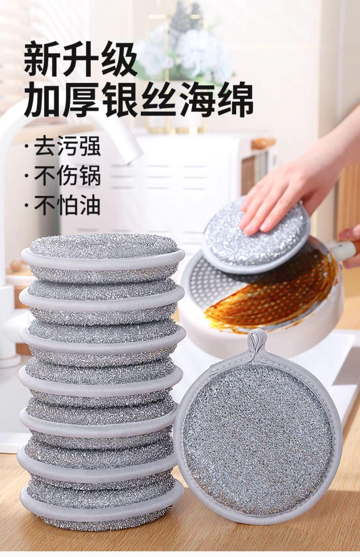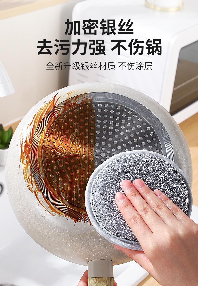 Esponja de seda plateada de doble cara para lavar platos, fábrica, cocina, cepillo descontaminante fuerte, olla, paño especial de limpieza, estropajo, venta al por mayor de fábrica