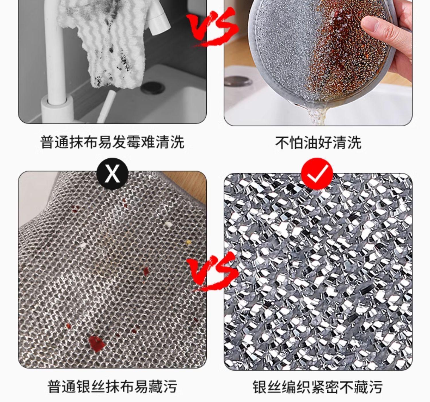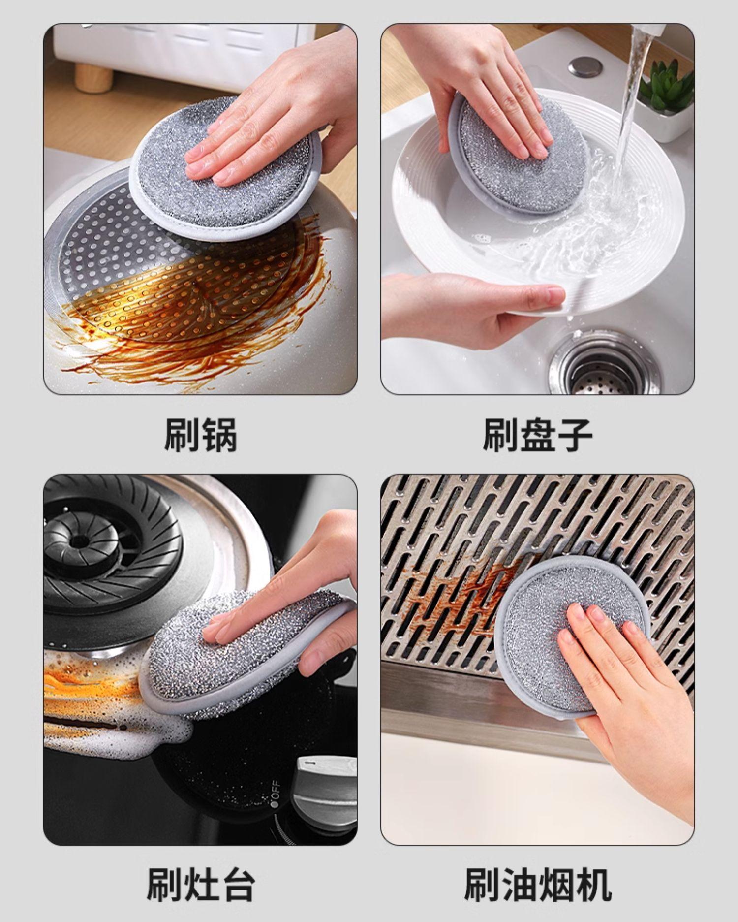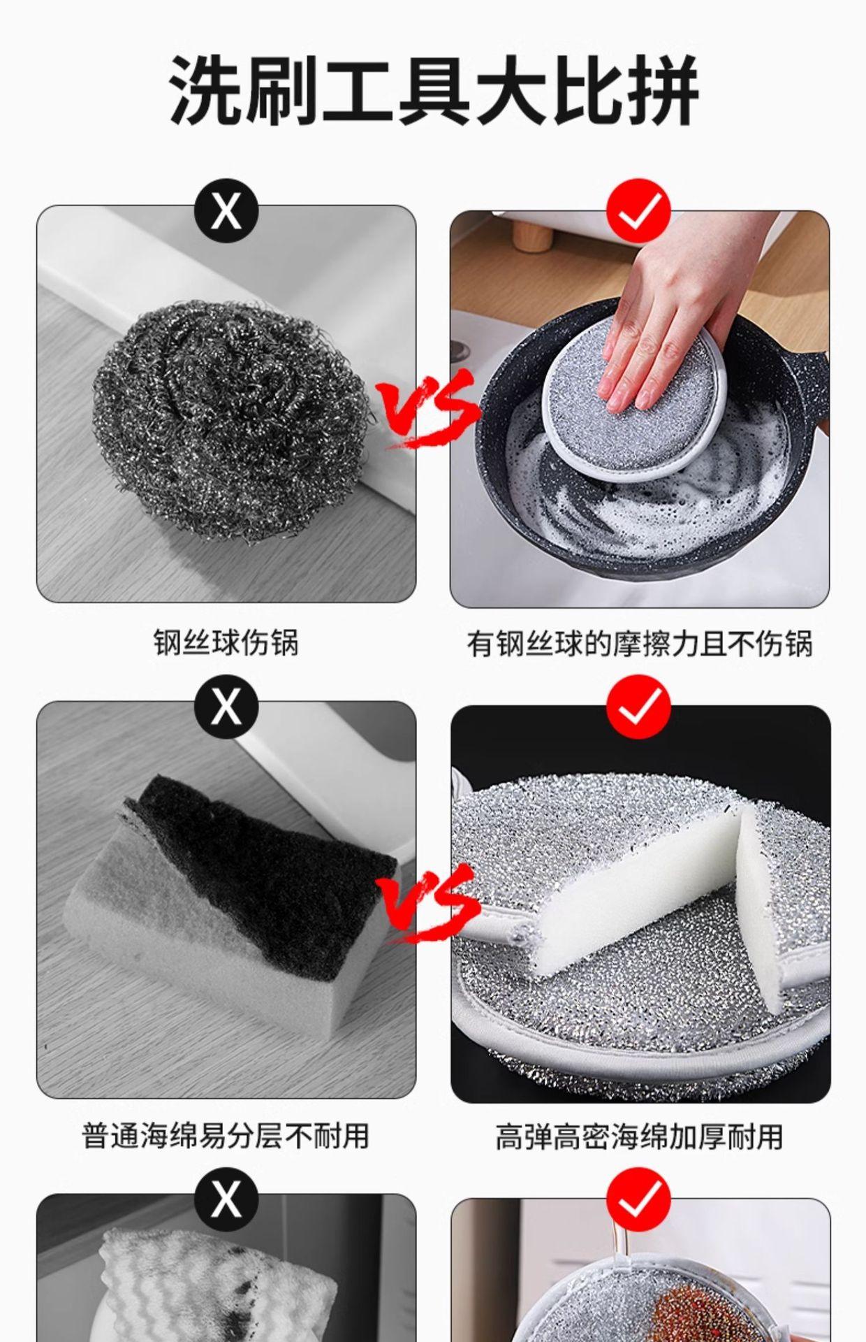 Esponja de seda plateada de doble cara para lavar platos, fábrica, cocina, cepillo descontaminante fuerte, olla, paño especial de limpieza, estropajo, venta al por mayor de fábrica