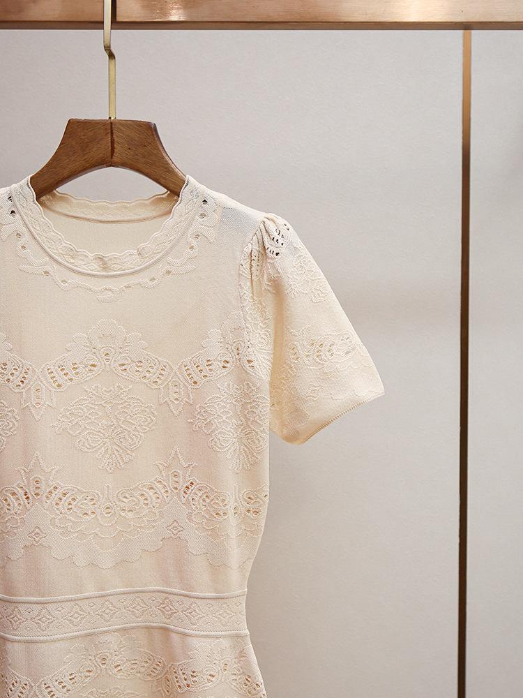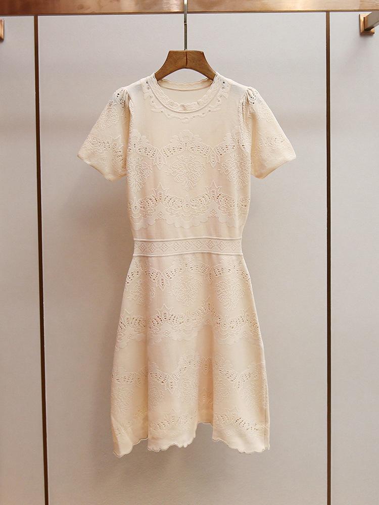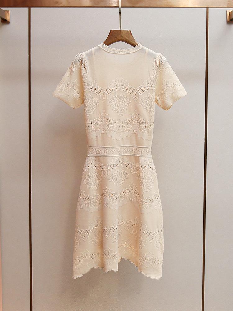Shenzhen Nanyou Vestido Elegante Simple para Mujer de Clase Verano Manga Corta Corte A Recorte en la Cintura Falda Corta de Punto para Mujer