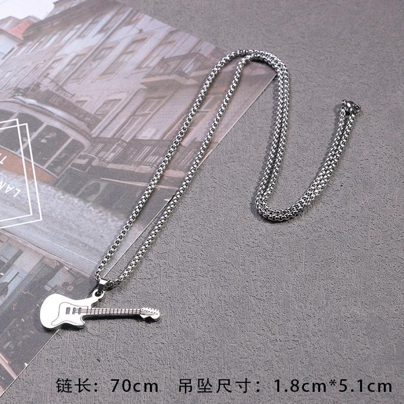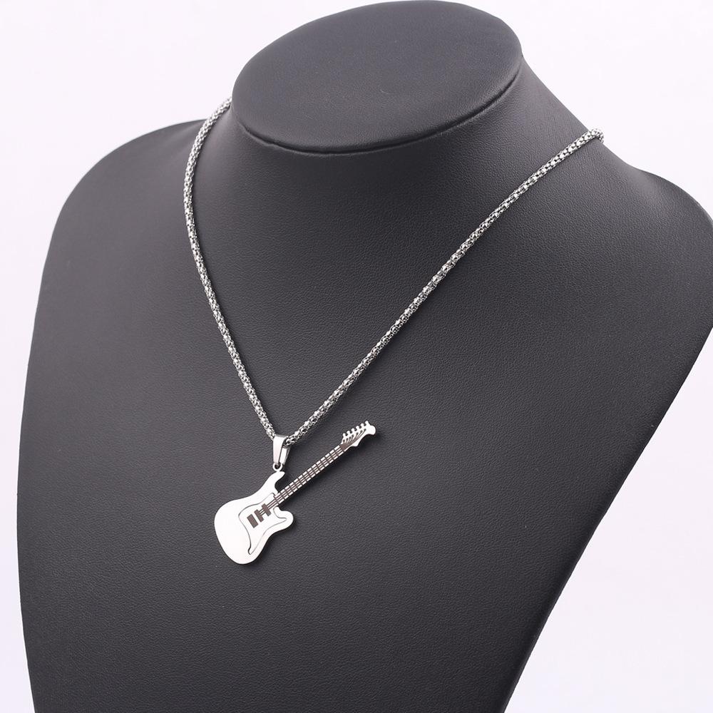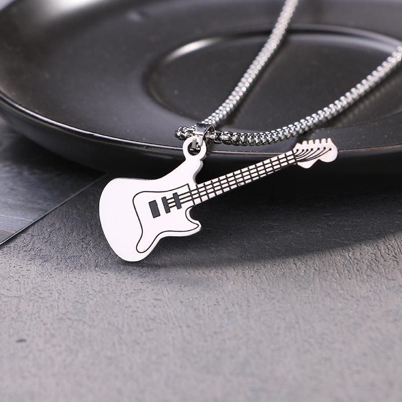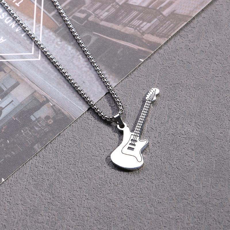 Colgante de guitarra de acero inoxidable estilo hip hop europeo y americano de Amazon, collar clásico de acero de titanio para hombre.