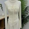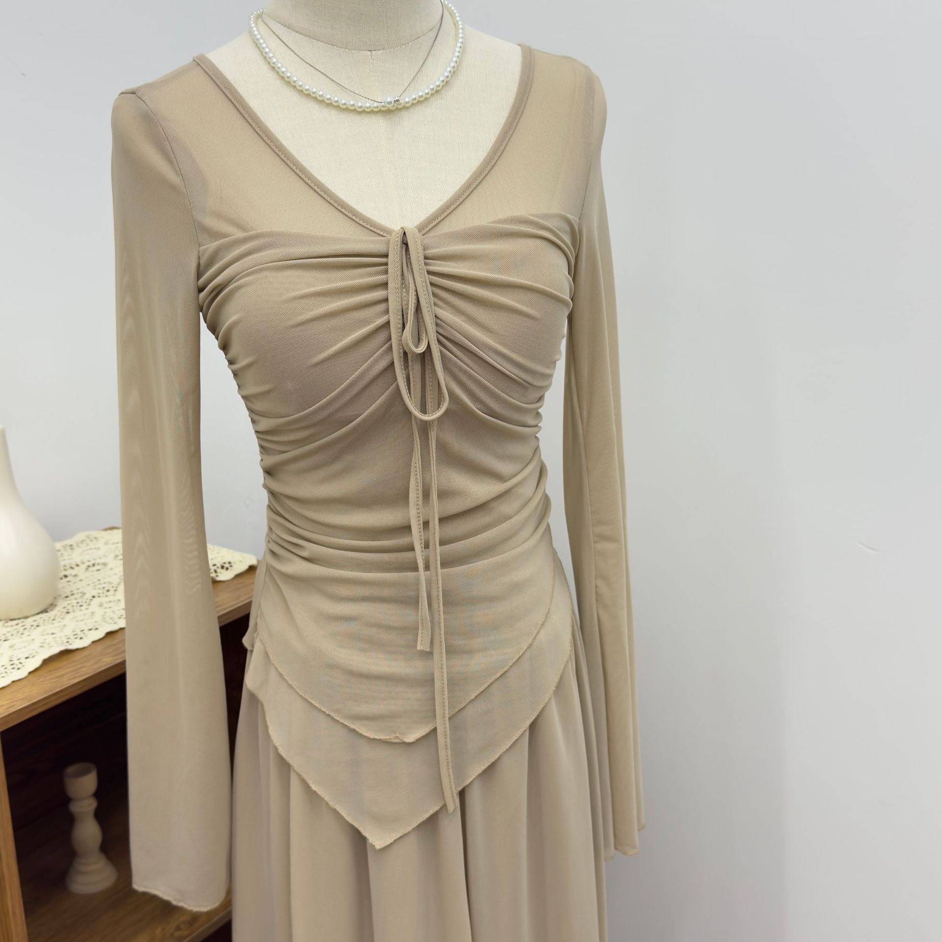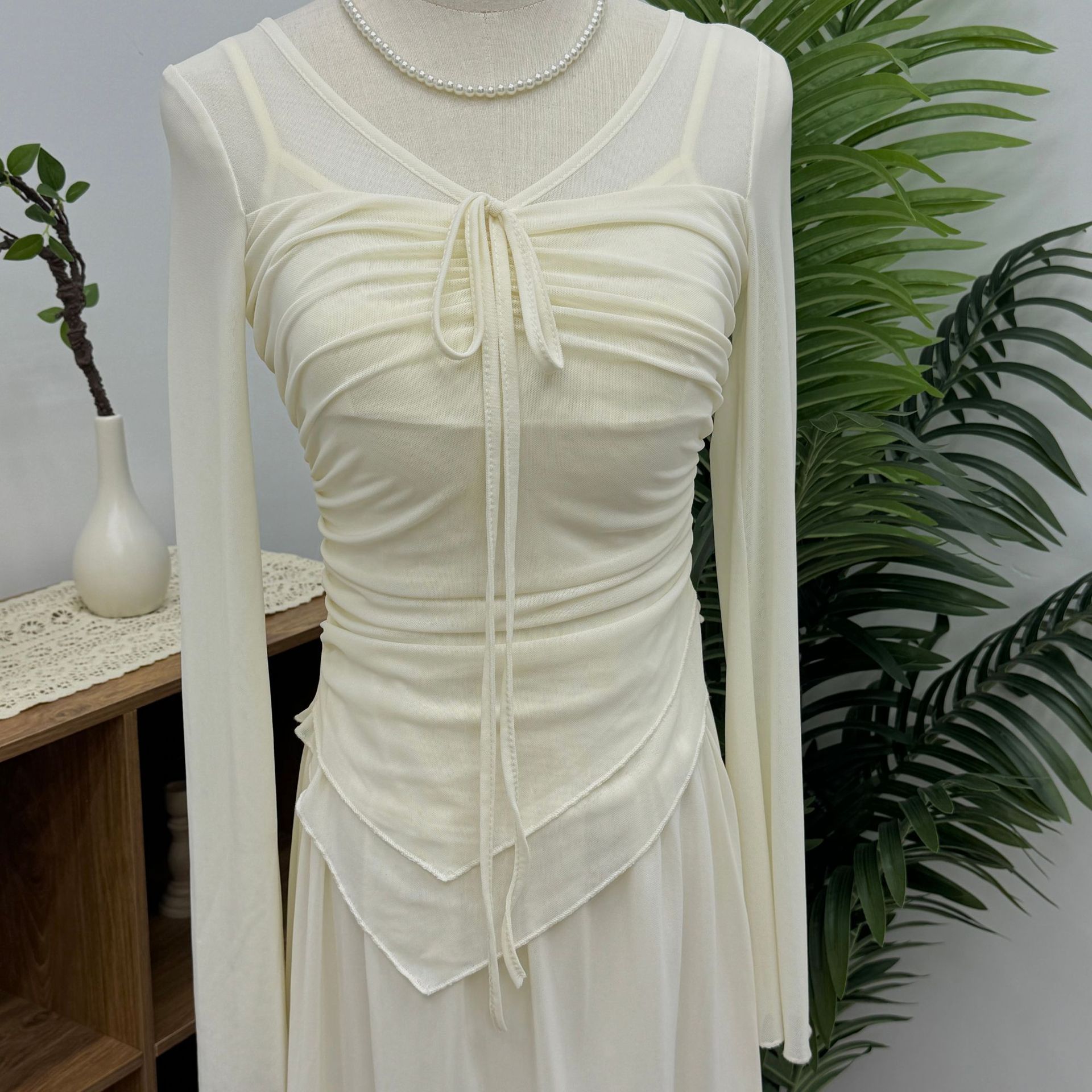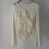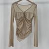 Blusa de manga larga irregular con cuello en V para mujer, blusa corta ajustada con protección solar, novedad de verano de 2024