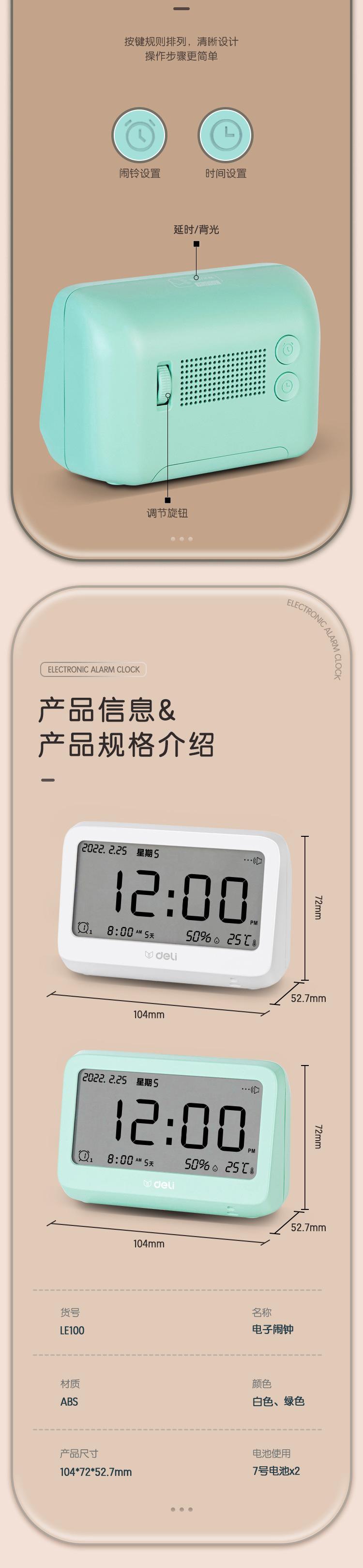 LE100-WH electronic alarm clock (white) 7 battery * 2, LE100-GN electronic alarm clock (green) 7 battery * 2