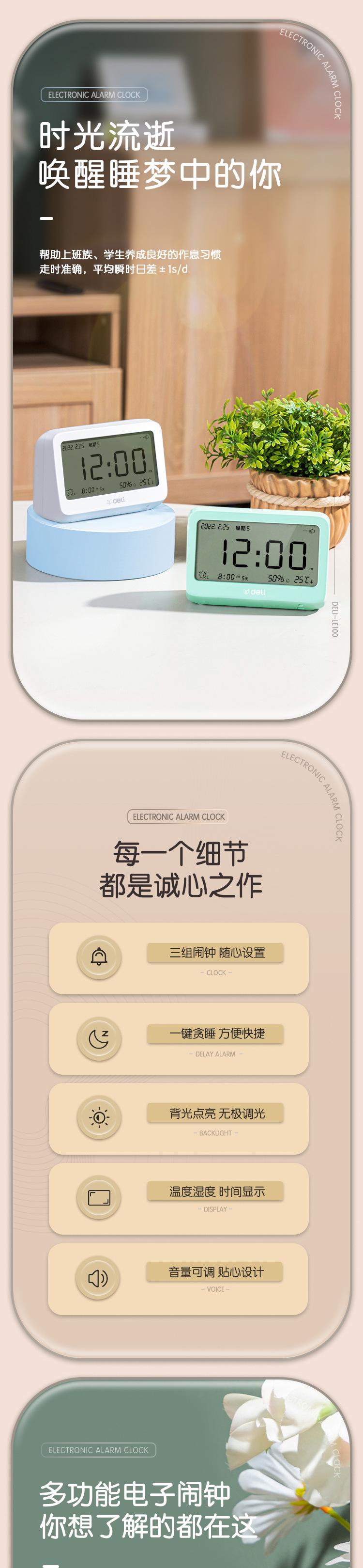 Reloj despertador electrónico Deli para estudiantes con nuevo reloj inteligente para niños y niñas, reloj despertador multifunción.