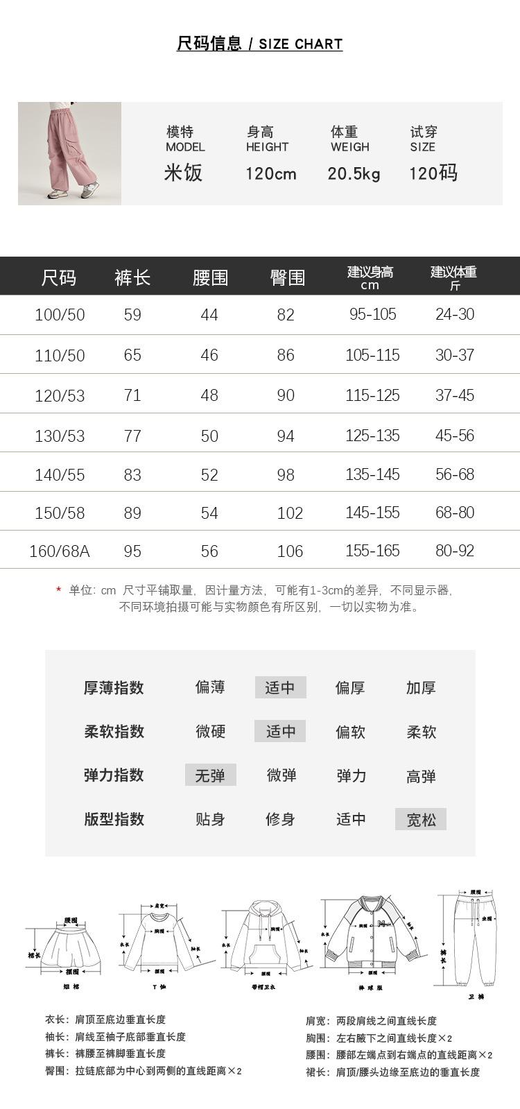 Size 100 is about 100cm tall, Size 110 is about 110cm tall, Size 120 is about 120cm tall, Size 130 is about 13...