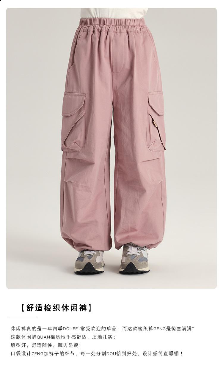 Pantalones casuales de moda para niñas Pudding Haru Autumn Cuts, ajustables, de color sólido, holgados y cómodos.