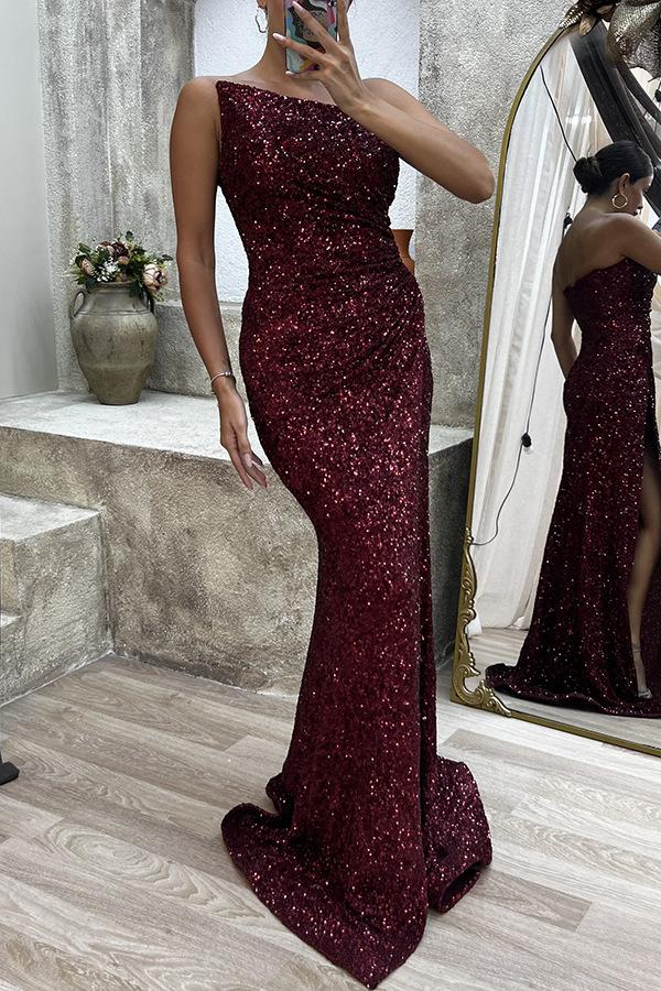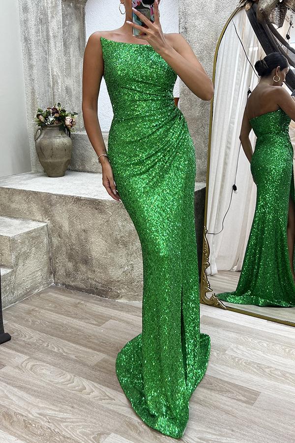 Vestido de fiesta con lentejuelas y abertura, estilo europeo y americano, informal, con cremallera, multicolor, para mujer, 2023