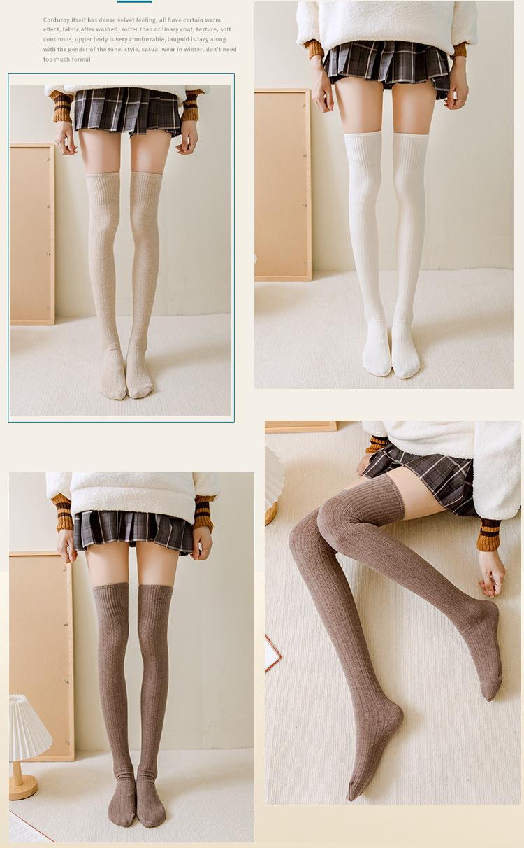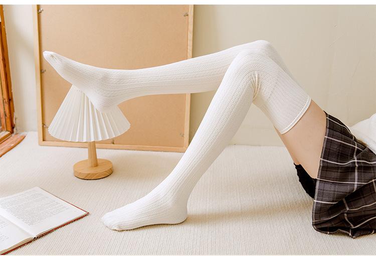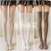 Medias blancas con estampado de cáñamo para otoño e invierno, calcetines altos cálidos japoneses para mujer, además de calcetines finos de terciopelo hasta el muslo, calcetines gruesos por encima de la rodilla