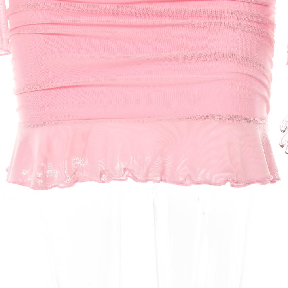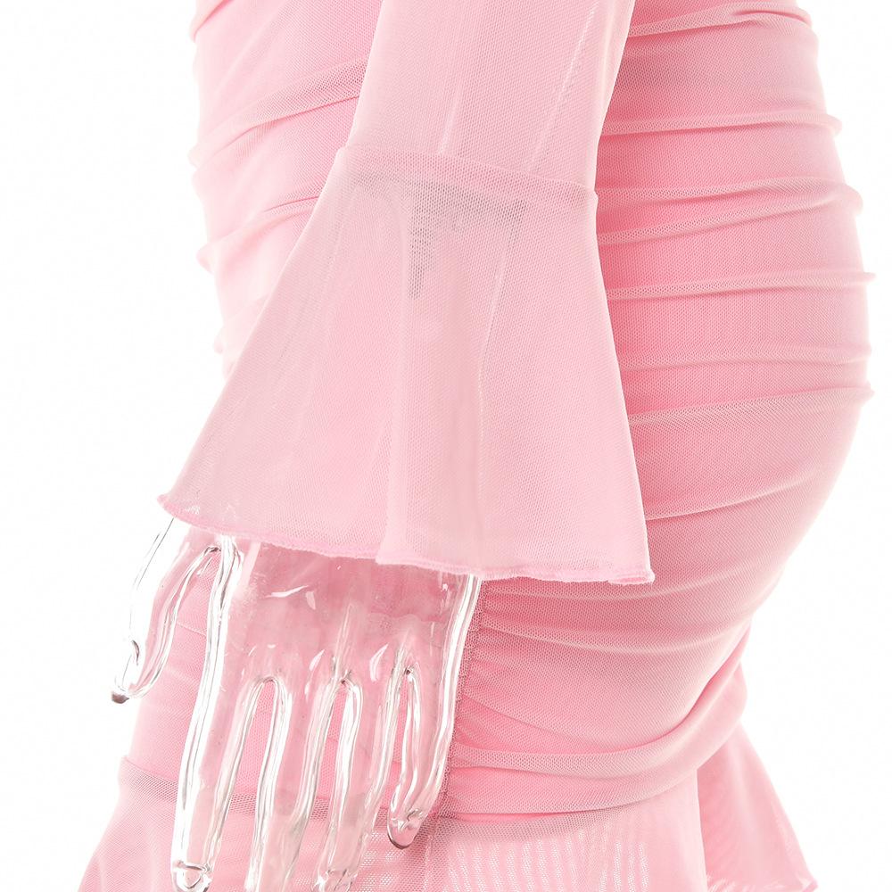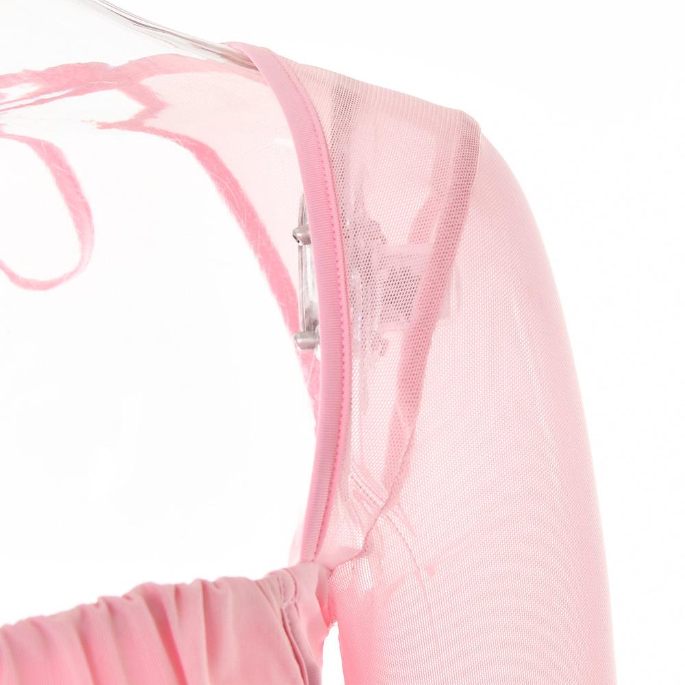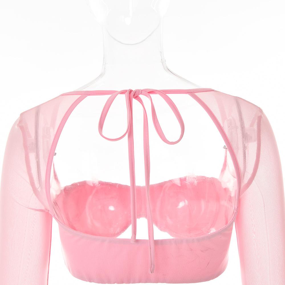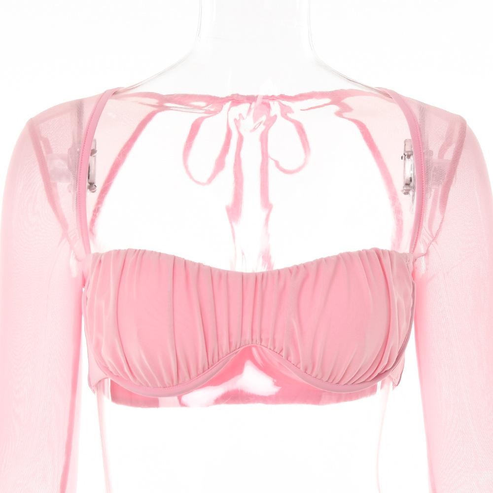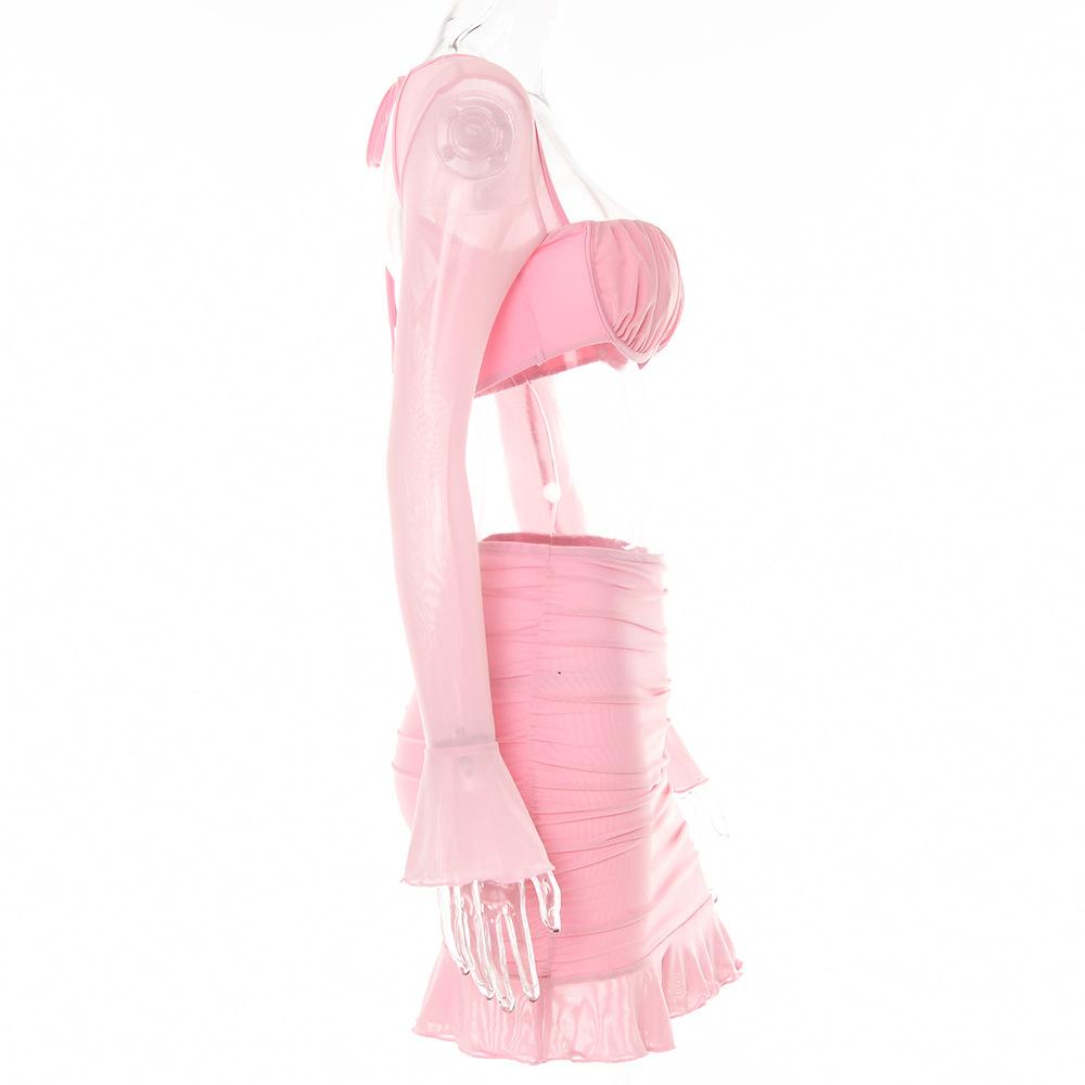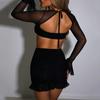 Conjunto Sexy de Dos Piezas sin Tirantes Transfronterizo Europeo y Americano para Mujer Otoño Nueva Moda Gasa con Perspectiva Tirantes Falda Corta de Manga Larga