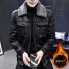 Cuero para Hombre 2024 Otoño e Invierno Nueva Moda Casual de Largo Medio con Forro Polar Cuello Cruzado Talla Grande Rompevientos de Cuero