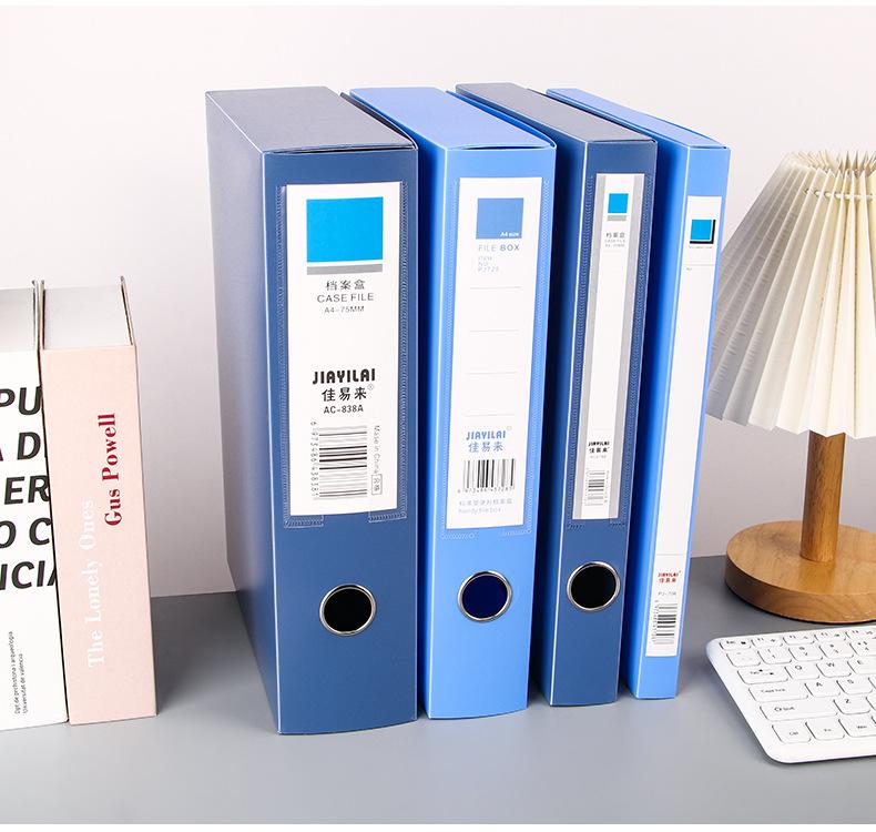 Caja de archivo A4 engrosada con libro de información integrado, caja de archivo al por mayor, caja de almacenamiento de plástico de gran capacidad, suministros de oficina