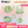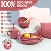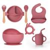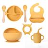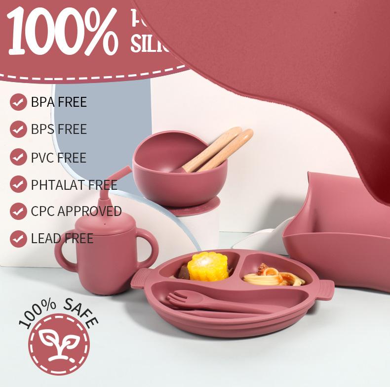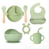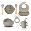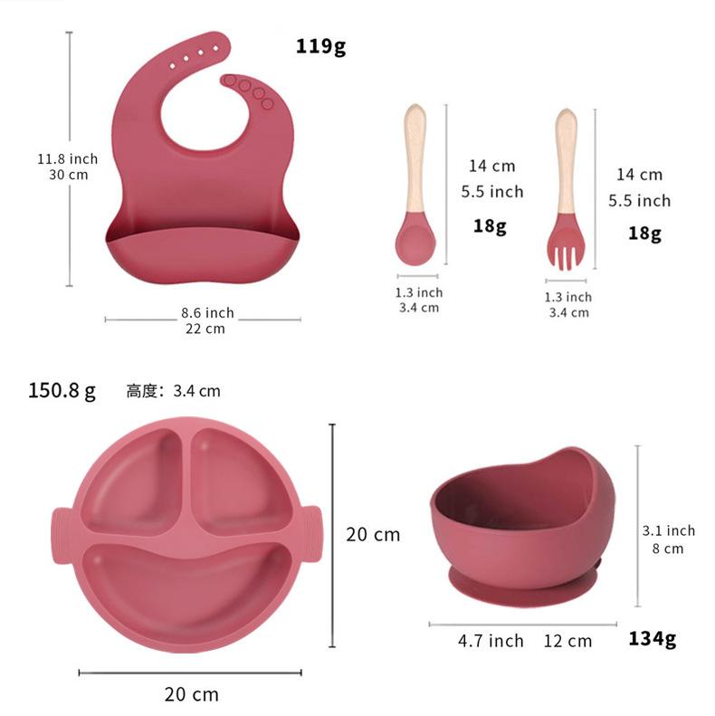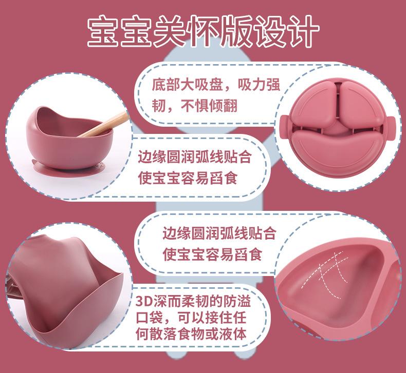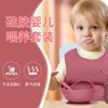 Juego de plato de cena de silicona para bebé, tazón suplementario para bebé, plato de cena de tres compartimentos con juego de gel para la dentición, babero para niños, vajilla para alimentación
