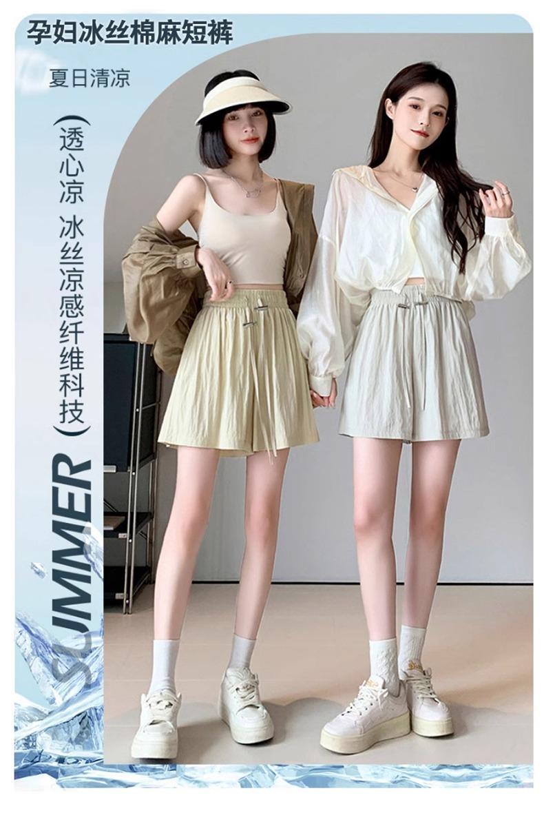 Pantalones cortos de talla grande para embarazadas, de verano, finos, con cordón, informales, pequeños, para embarazadas
