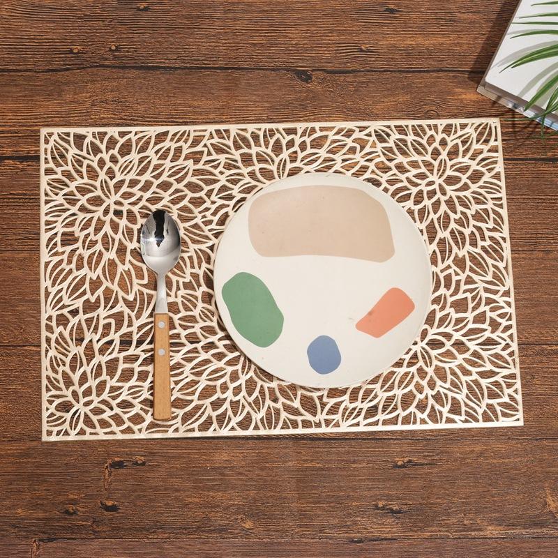 Mantel Individual Cuadrado Hueco de PVC Estilo Japonés Hotel Decorativo Aislamiento Térmico Tapete Hogar Antideslizante Tapete para Tazón Venta al por Mayor por Lote