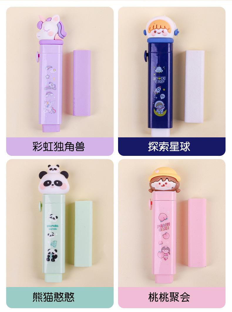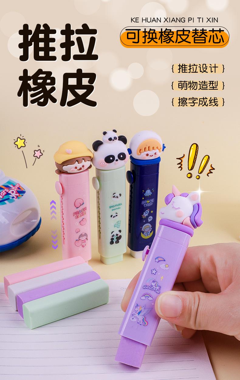 Bonita goma de borrar de dibujos animados que no deja marcas ni residuos, ideal para estudiantes de primaria, con prensa especial de cuero.
